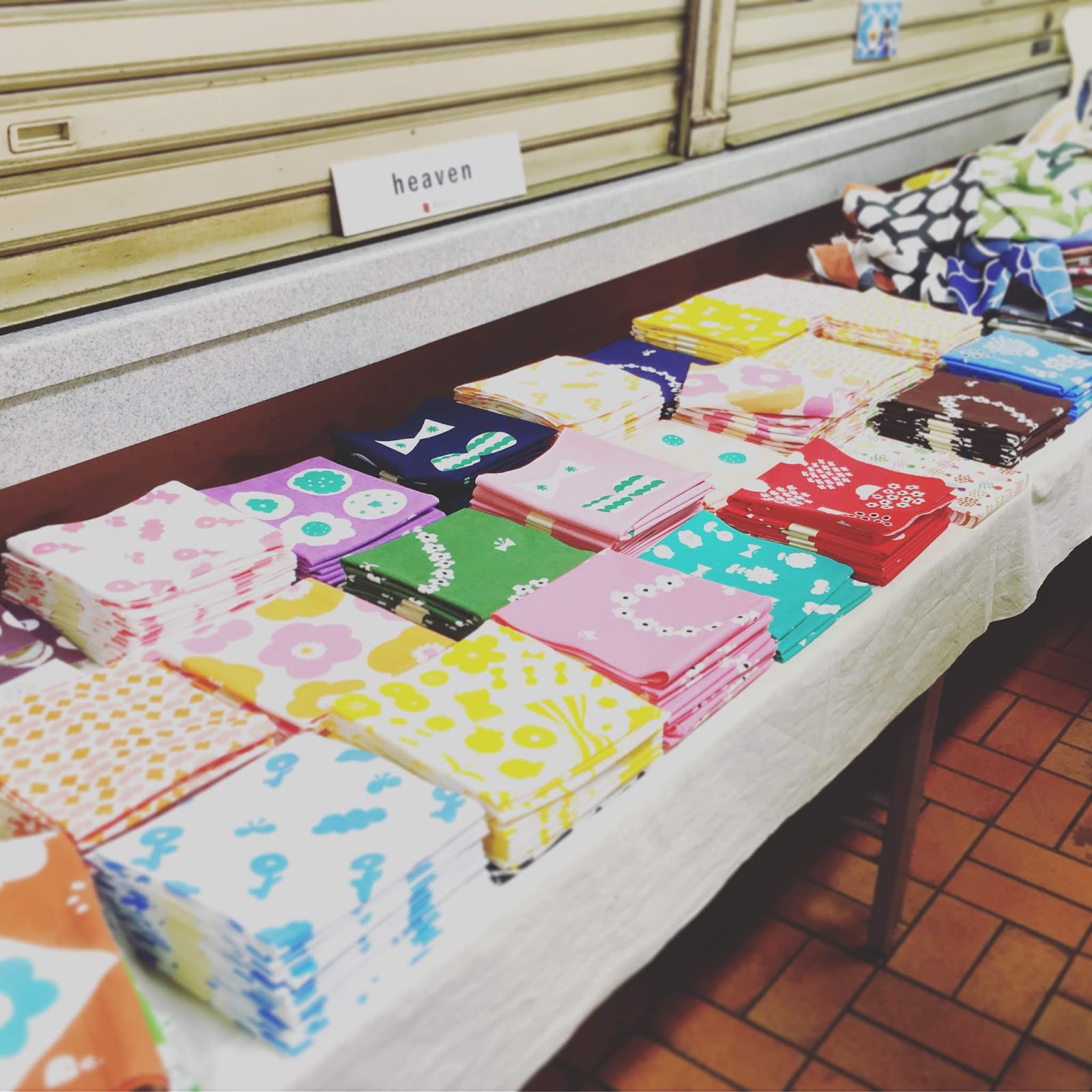 heaven のてぬぐいたちはこんな感じで並べていただきました♩