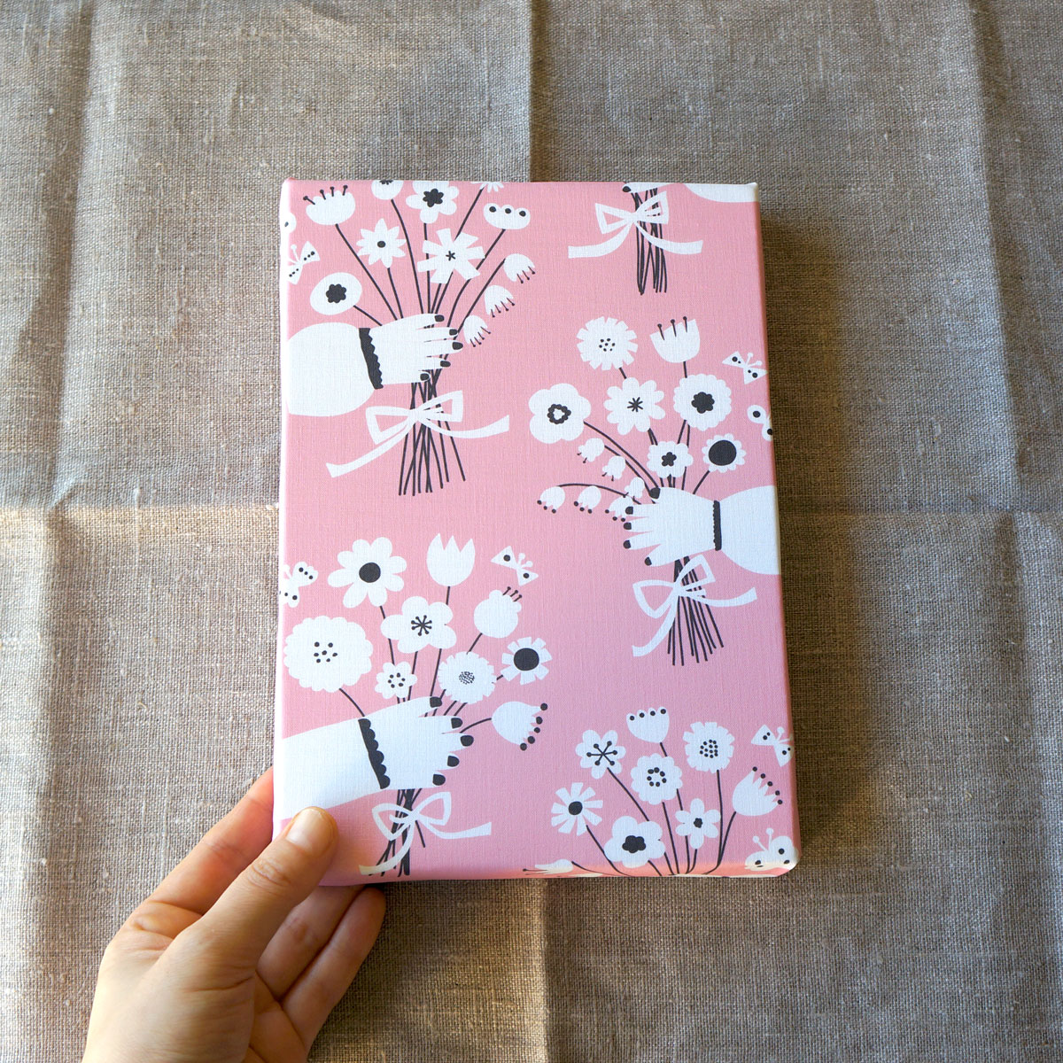 新作ファブリックパネル「bouquet」をお店に並べました。