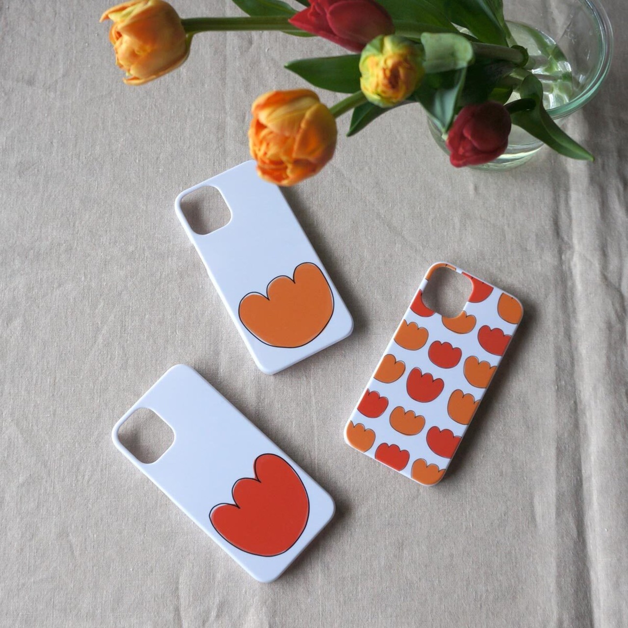 「 tulip( red & orange )」<ホワイトケース>【 表面のみ印刷 】
