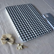 「 tokimeki gingham check( ブラック )」< iPadケース >【手帳型ソフトタイプ】