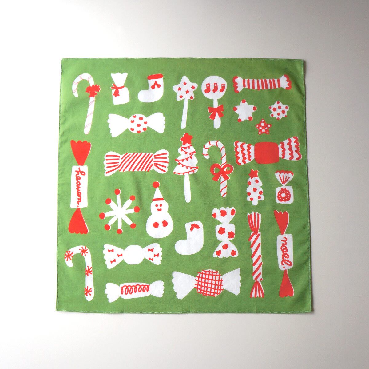 「christmas candy(green)」大判ハンカチ/バンダナ/ファブリックポスター