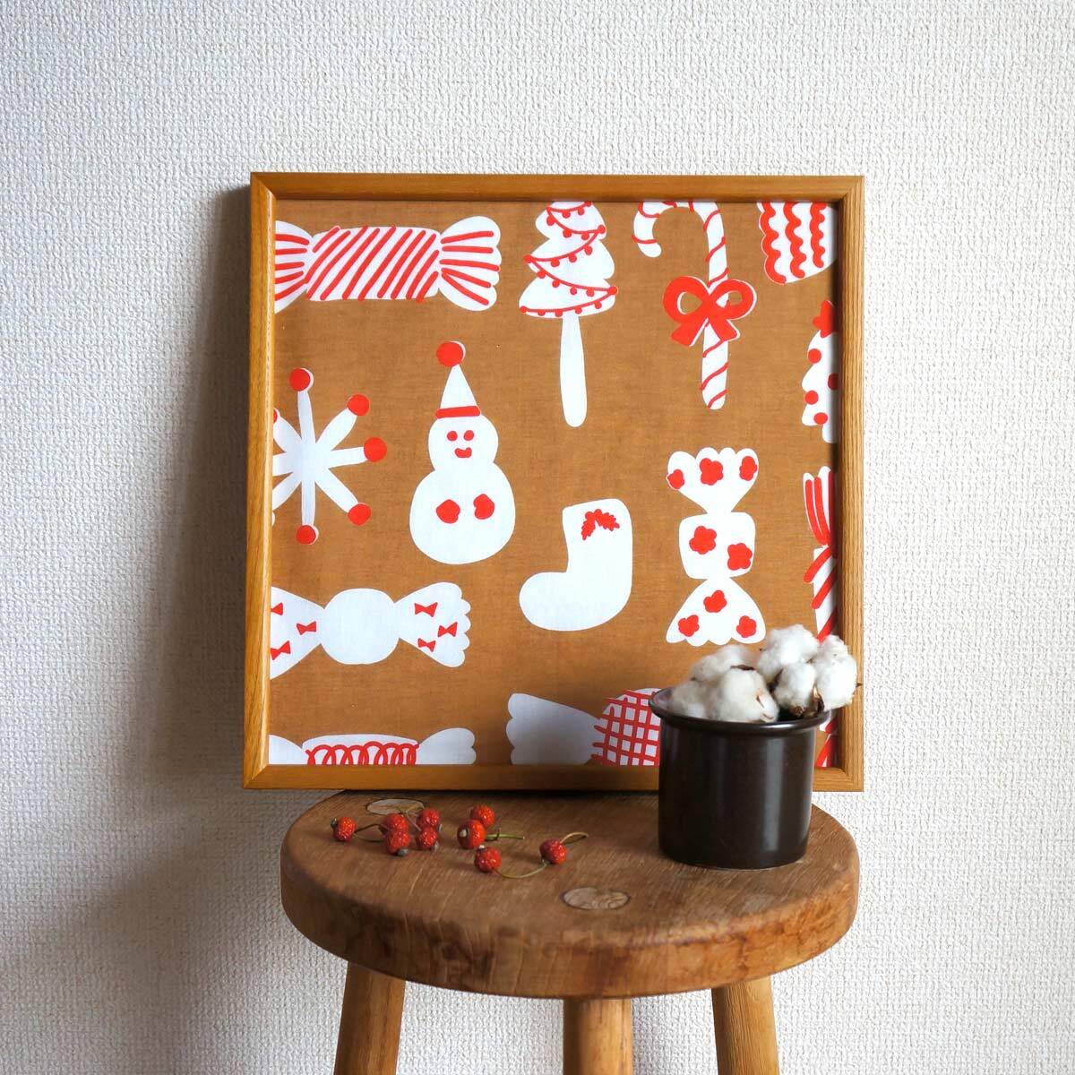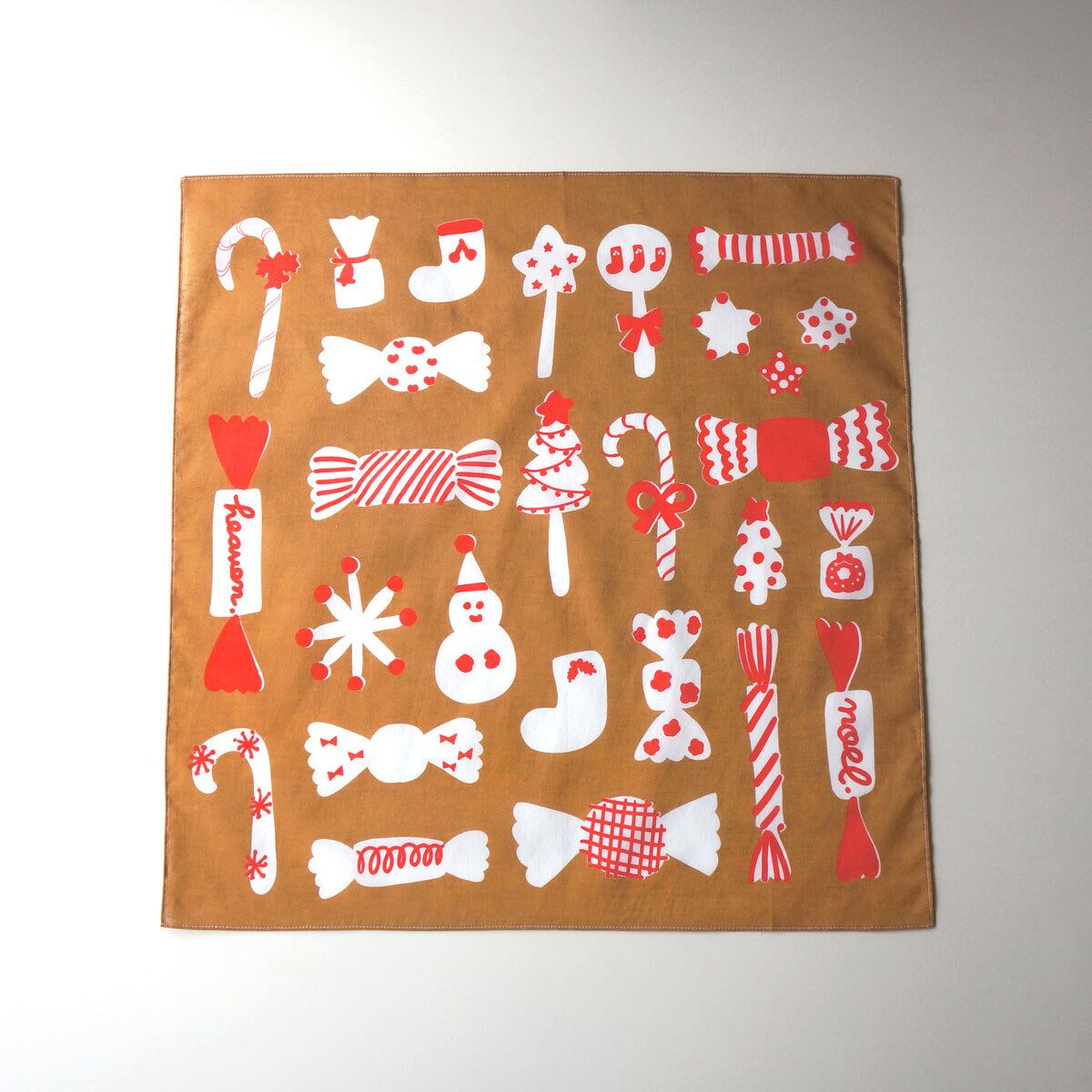 「christmas candy(brown)」大判ハンカチ/バンダナ/ファブリックポスター