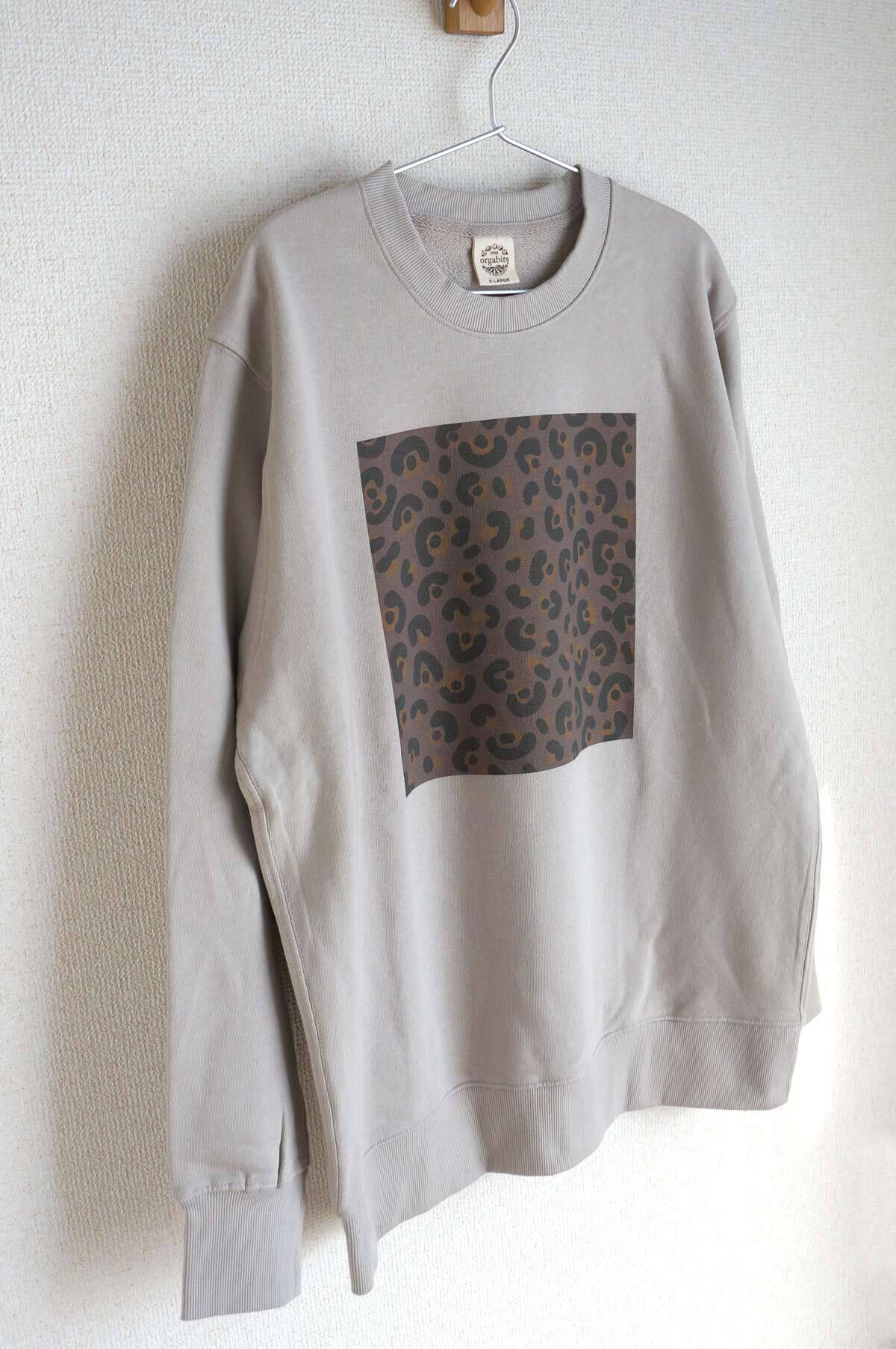 オーガニックコットントレーナー「 fuwa fuwa leopard( ダークブラウン × サンドベージュ )」