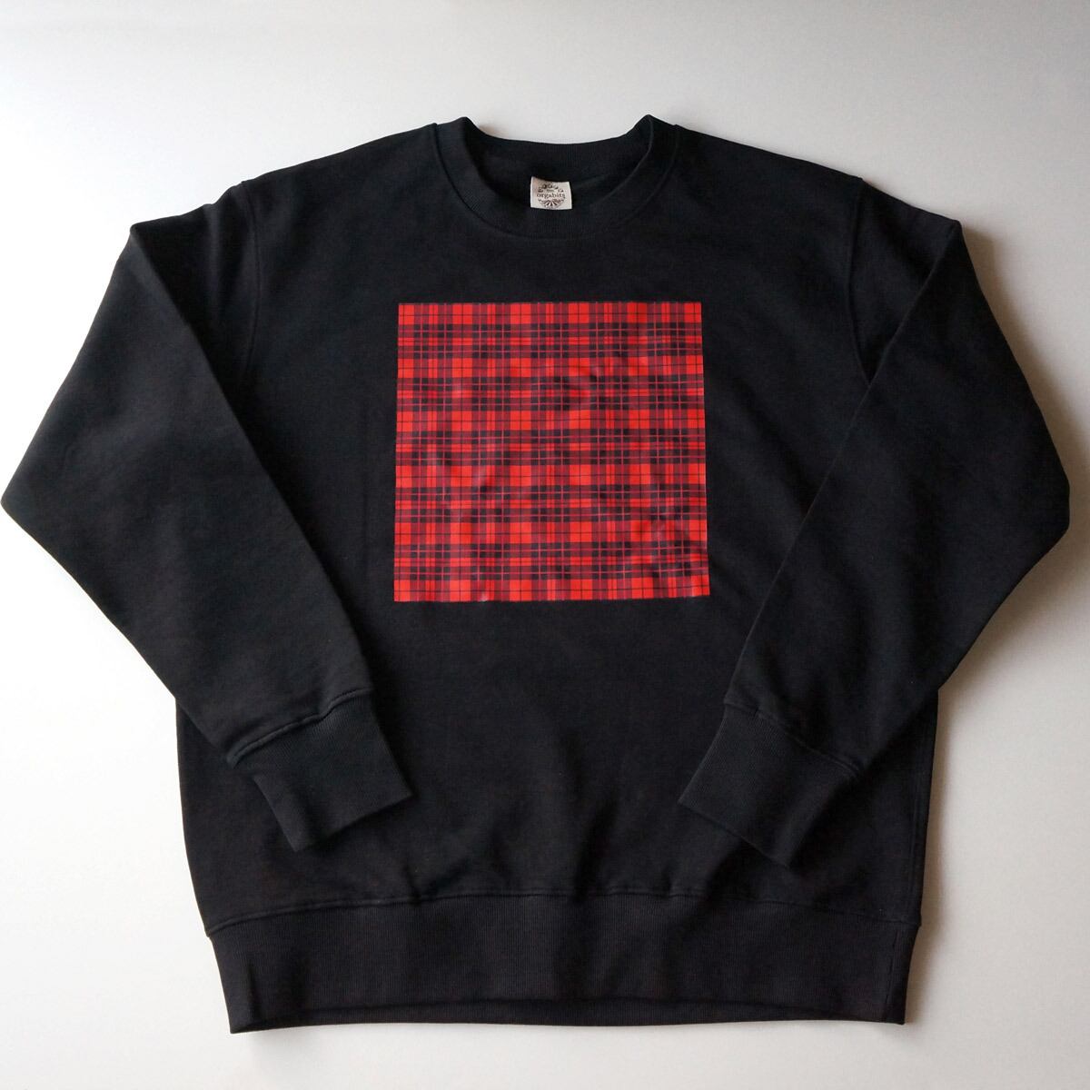 オーガニックコットントレーナー「 nostalgic tartan check( レッド × スミクロ )」