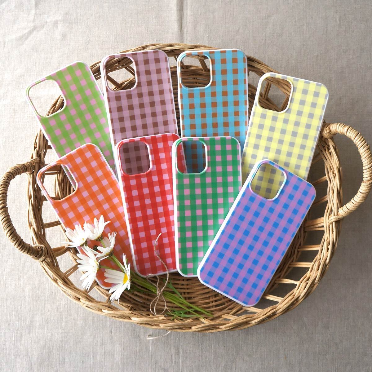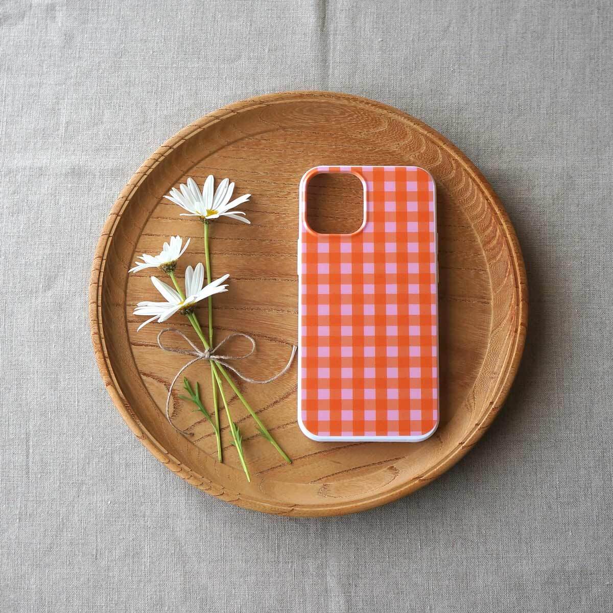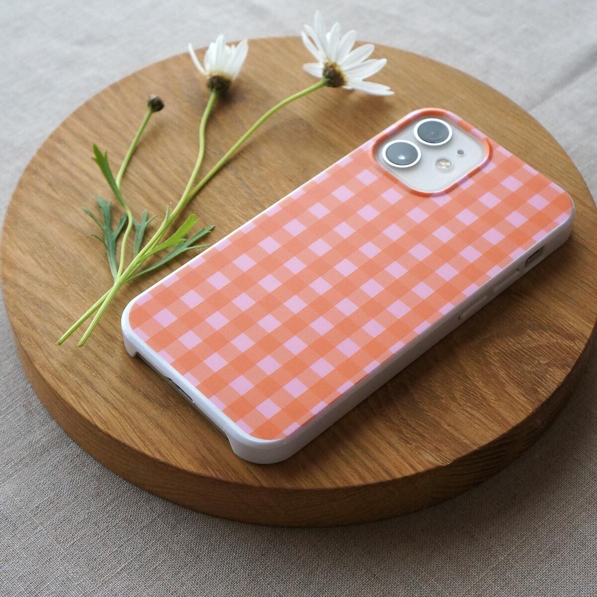 「 tokimeki gingham check( orange & pink )」<ホワイトケース>【 表面のみ印刷 】