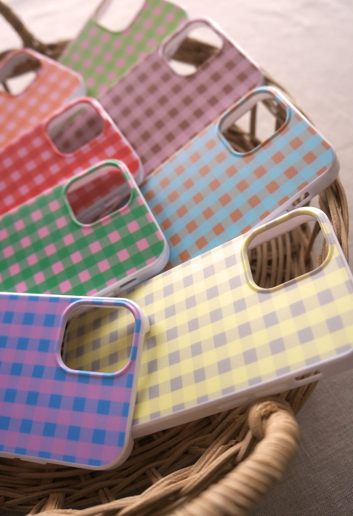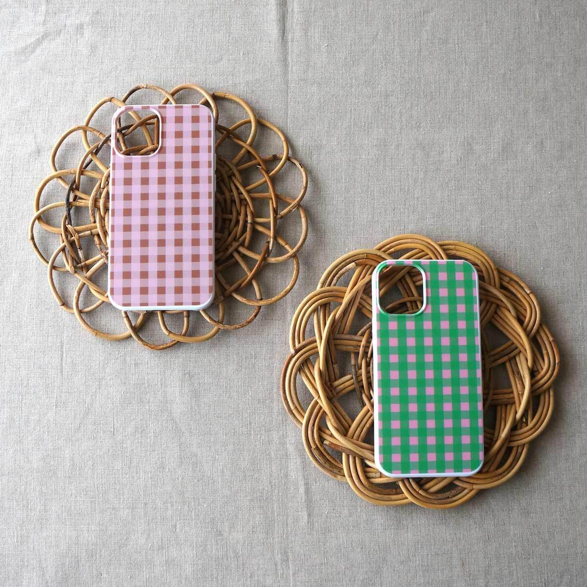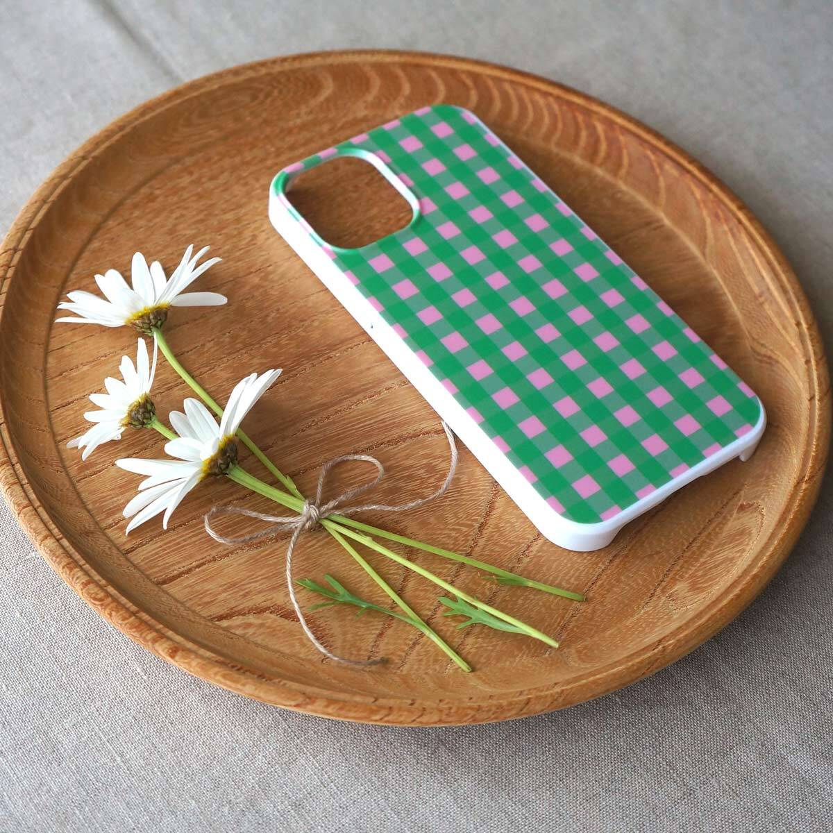 「 tokimeki gingham check( green & pink )」<ホワイトケース>【 表面のみ印刷 】