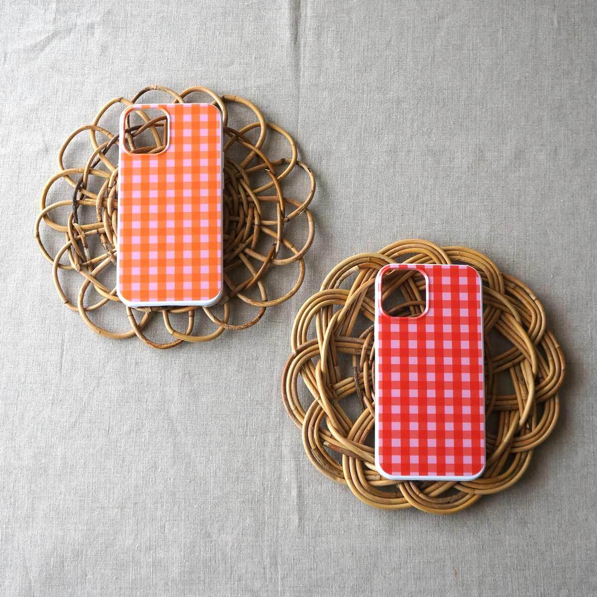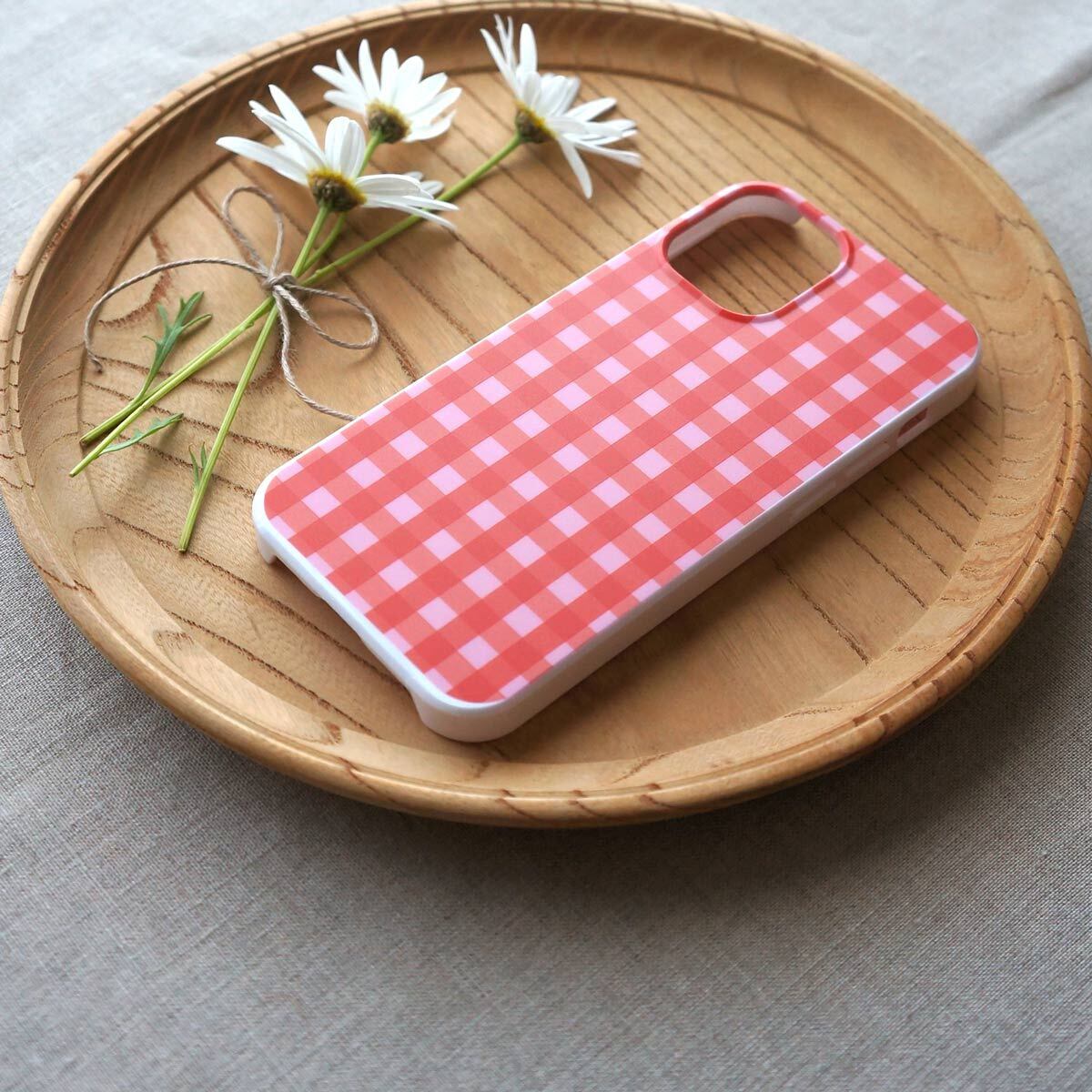 「 tokimeki gingham check( strawberry & pink )」<ホワイトケース>【 表面のみ印刷 】