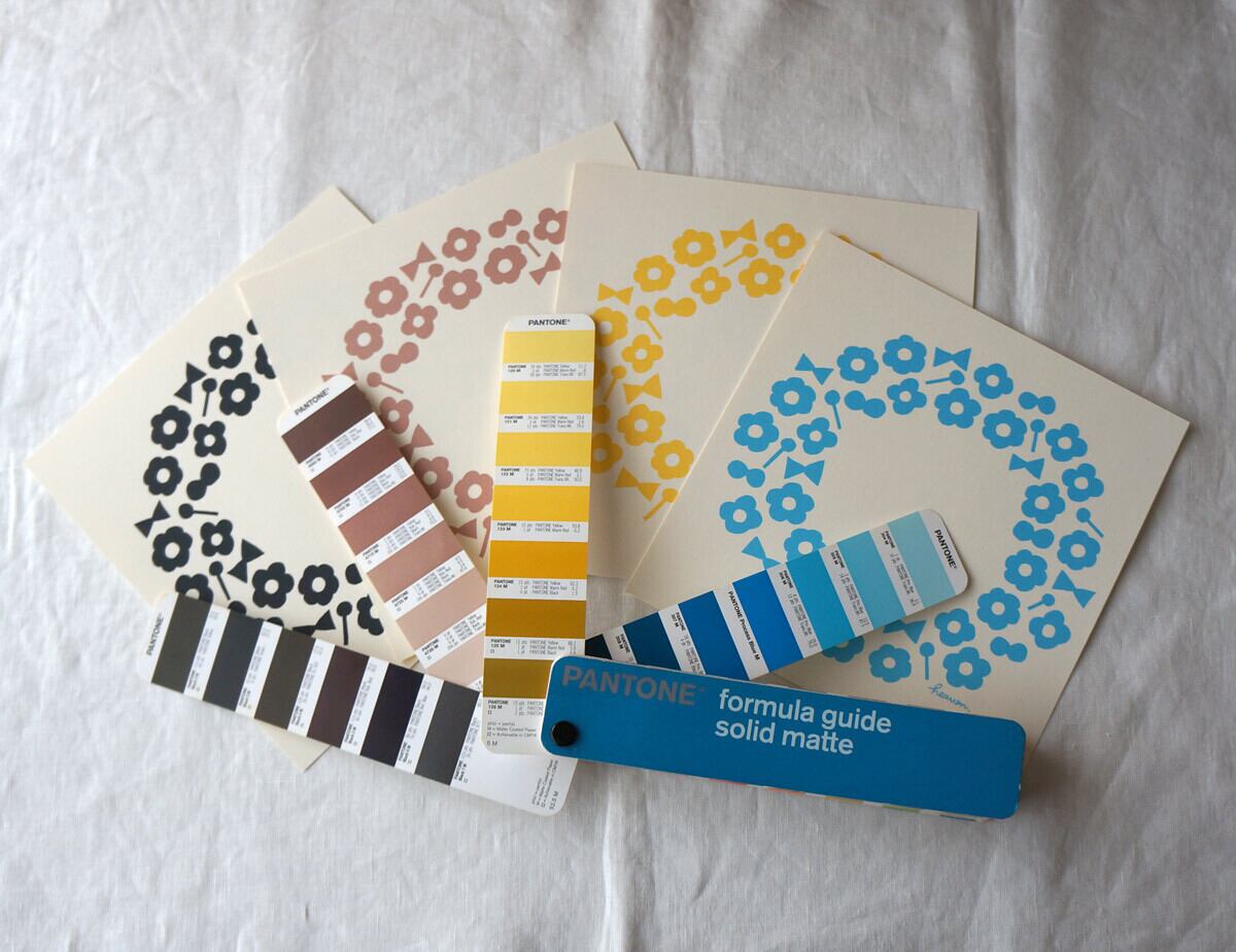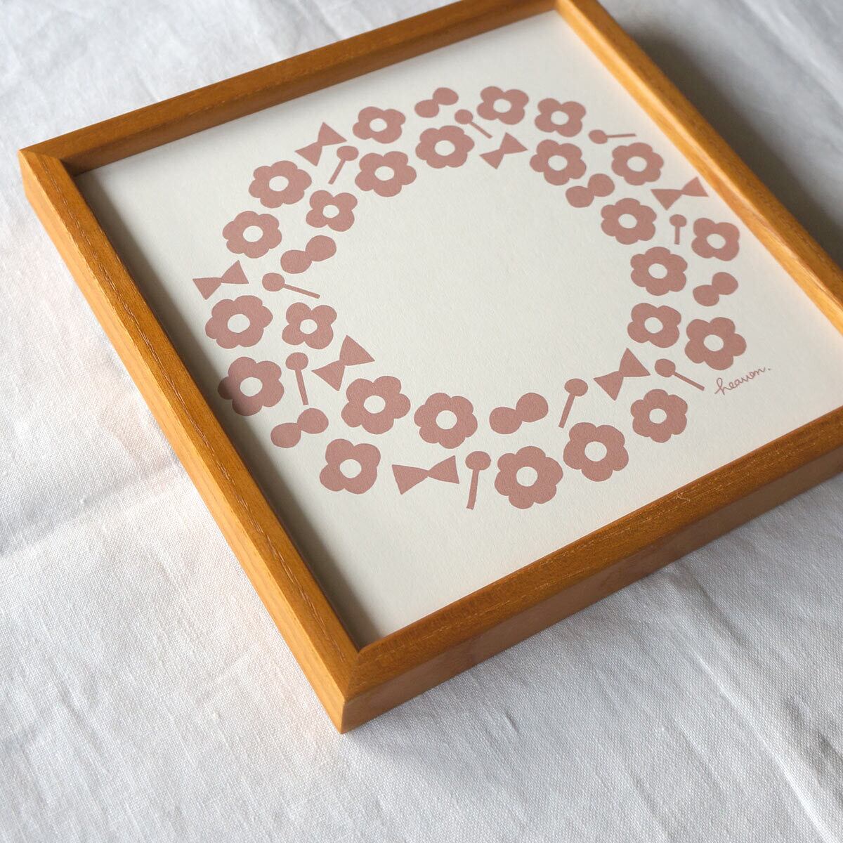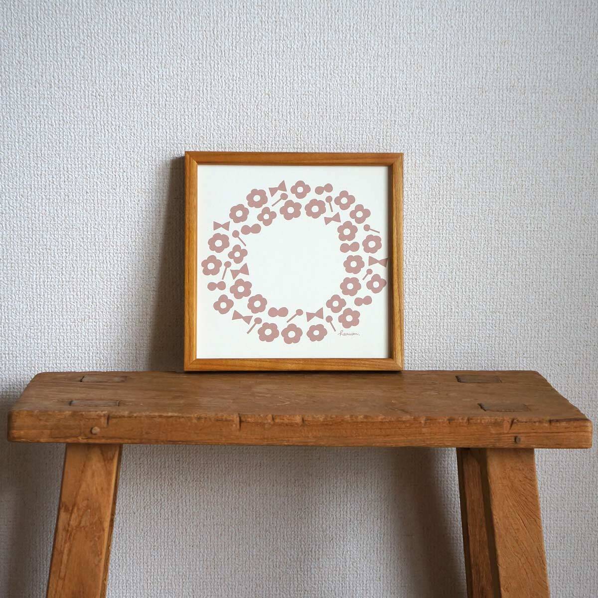 「 flower pop wreath(milk brown) 」 20cm角ポスター