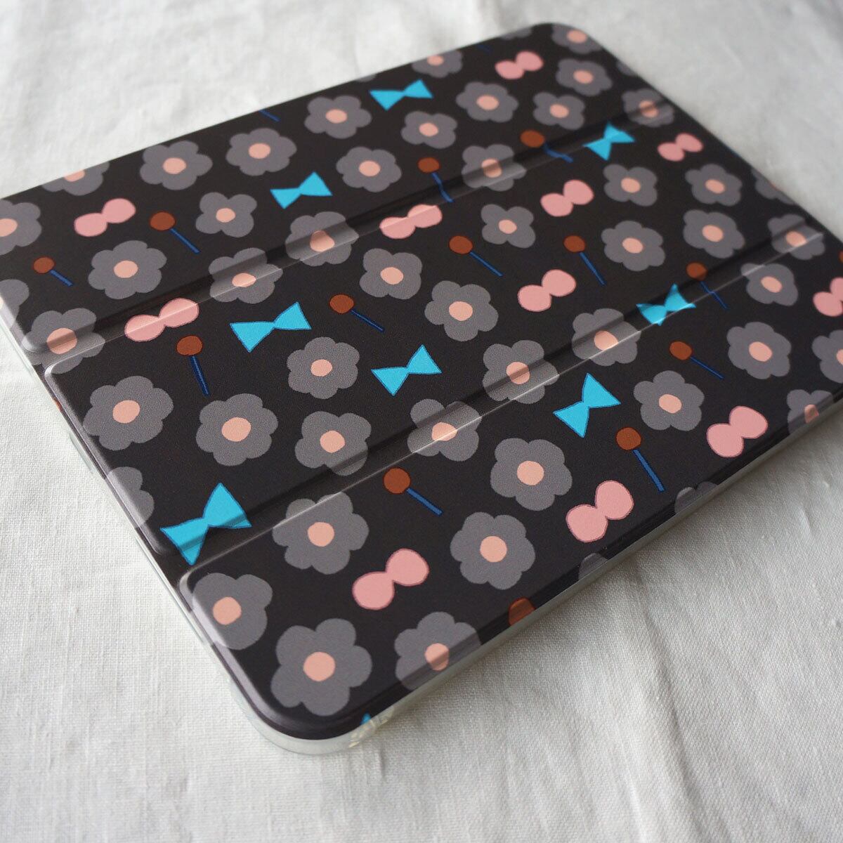「 flower pop( sweet charcoal )」< iPadケース >【手帳型ソフトタイプ】