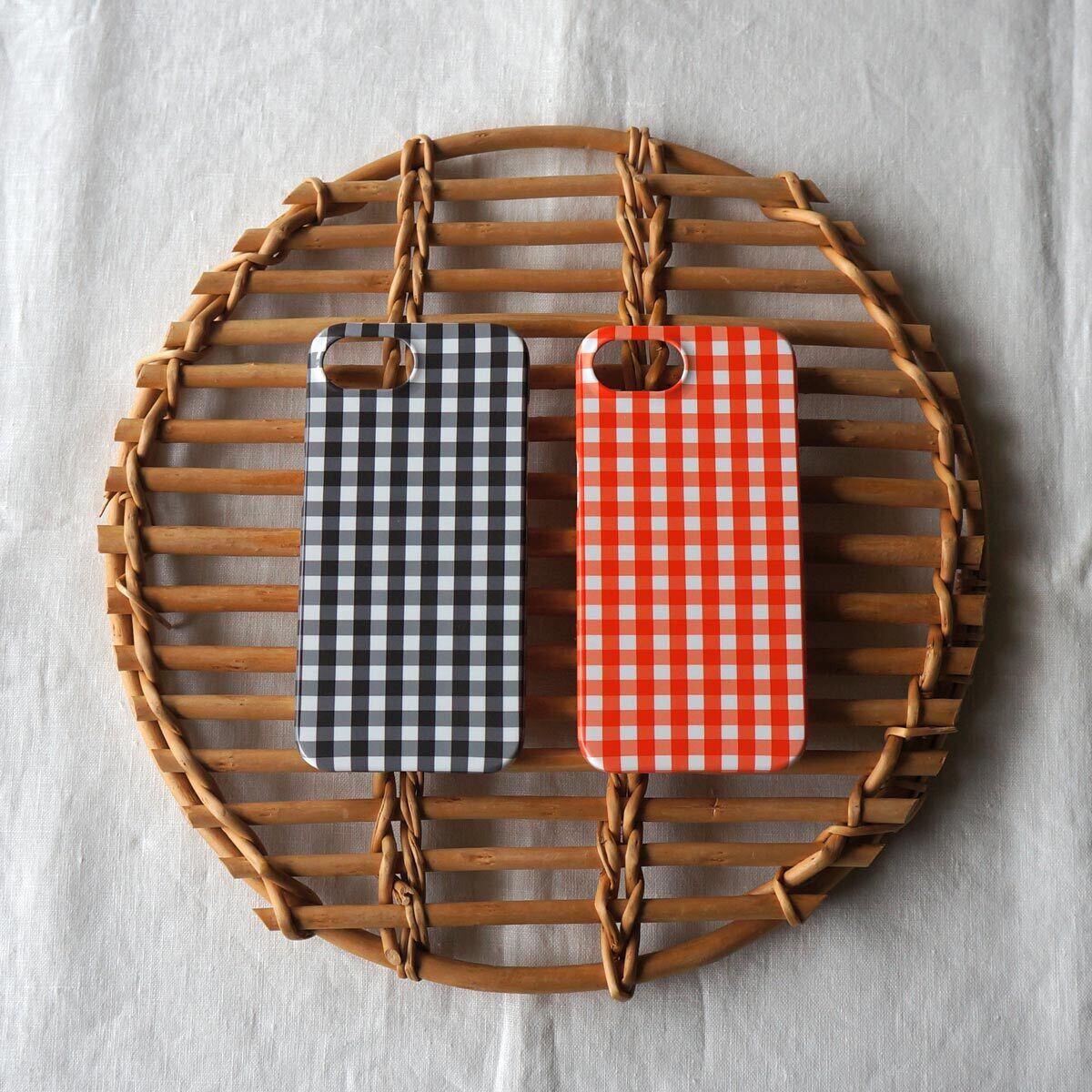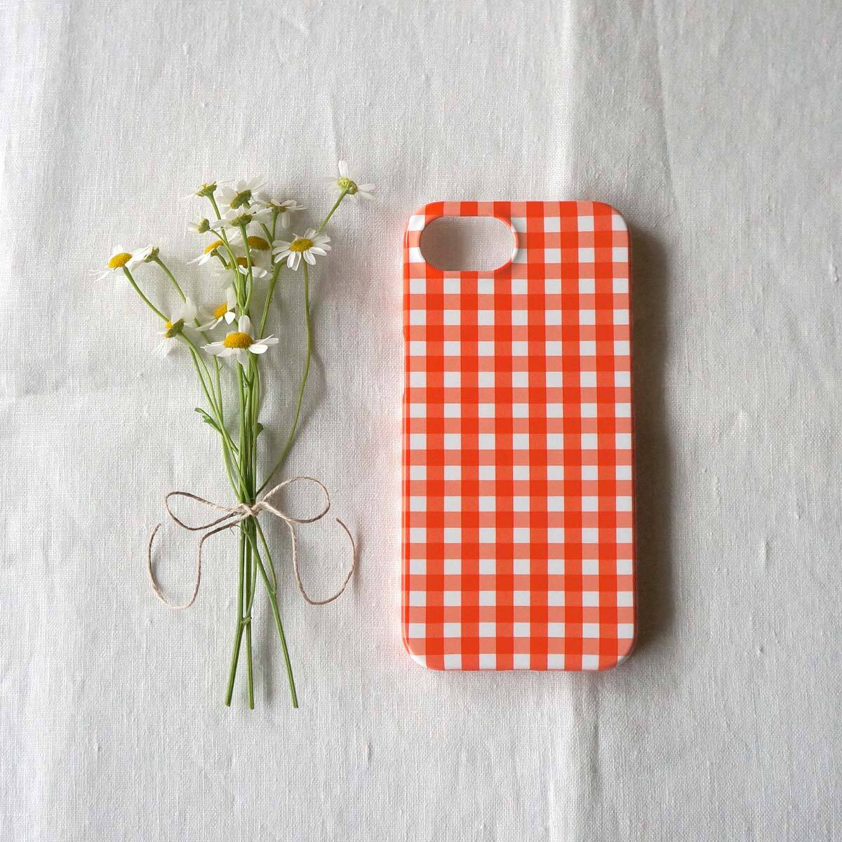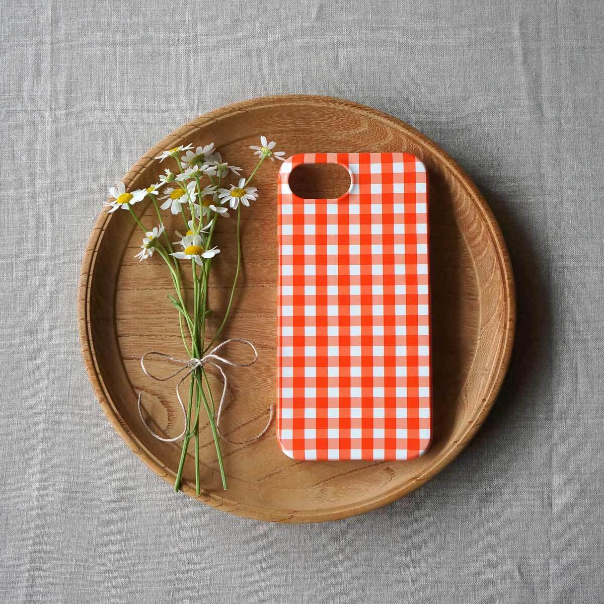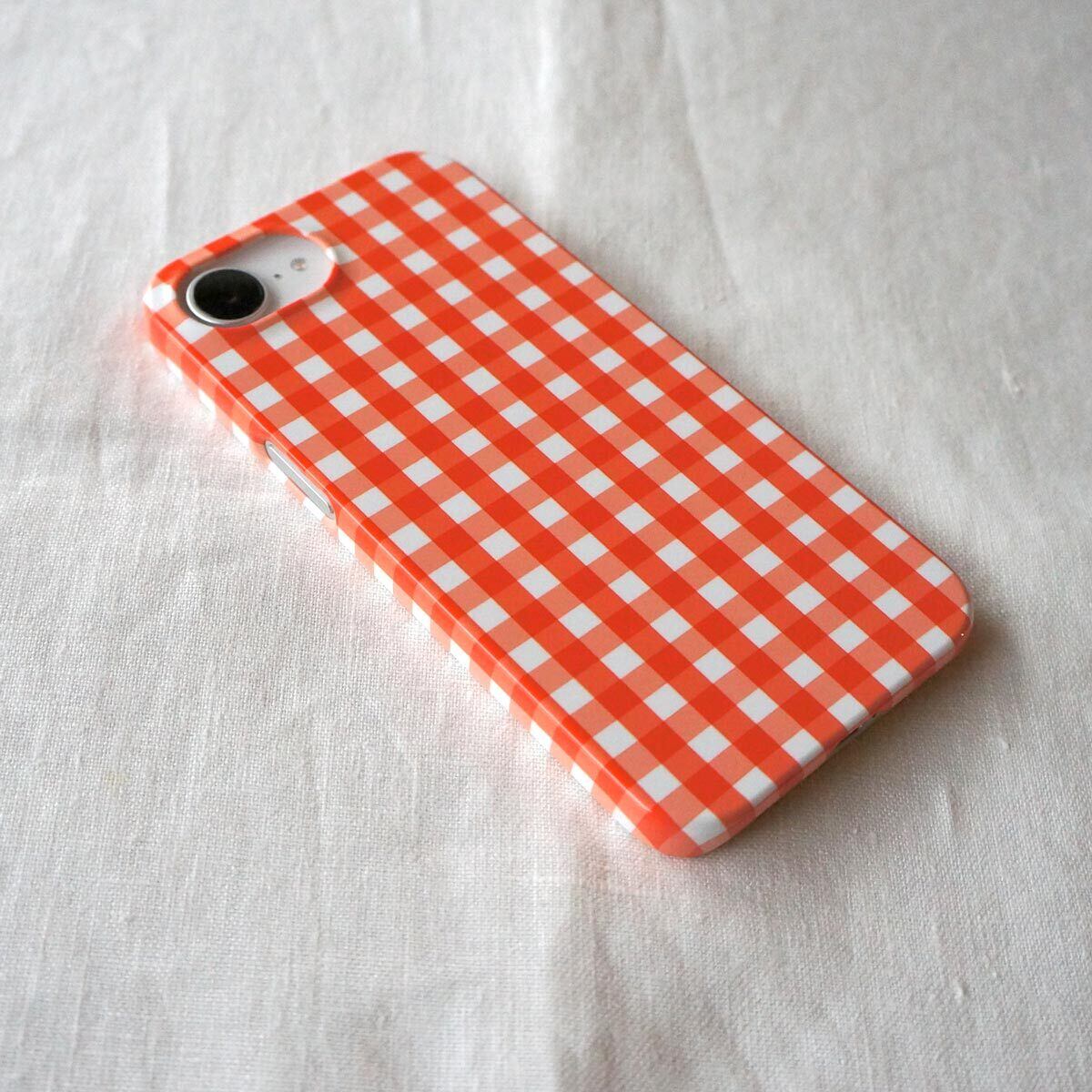 「tokimeki gingham check( orange red )」<ホワイトケース>【 側表面印刷 iPhoneケース 】