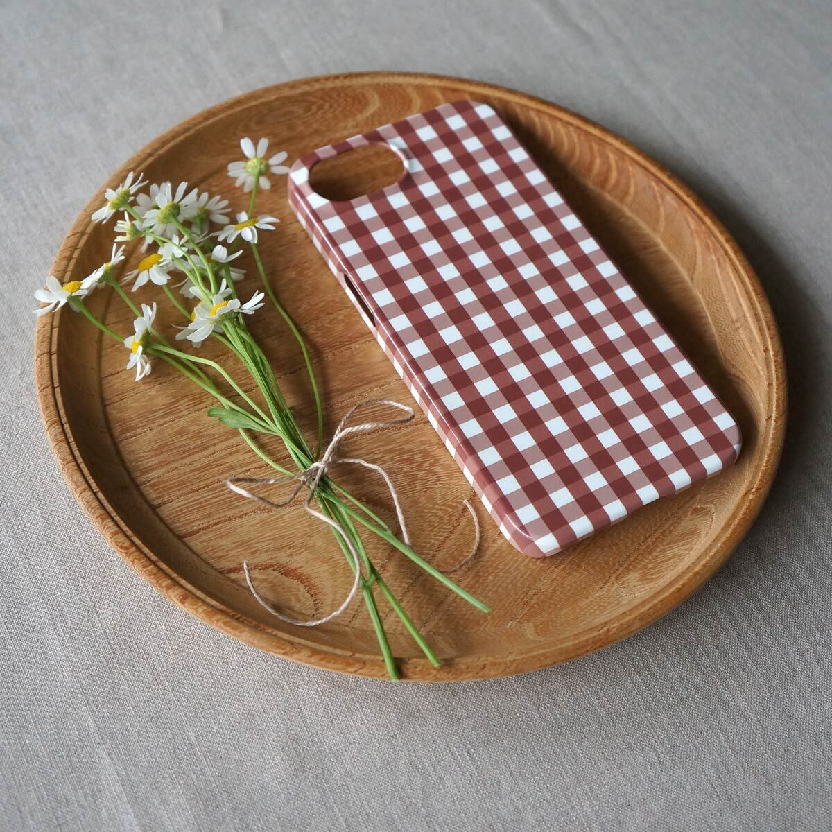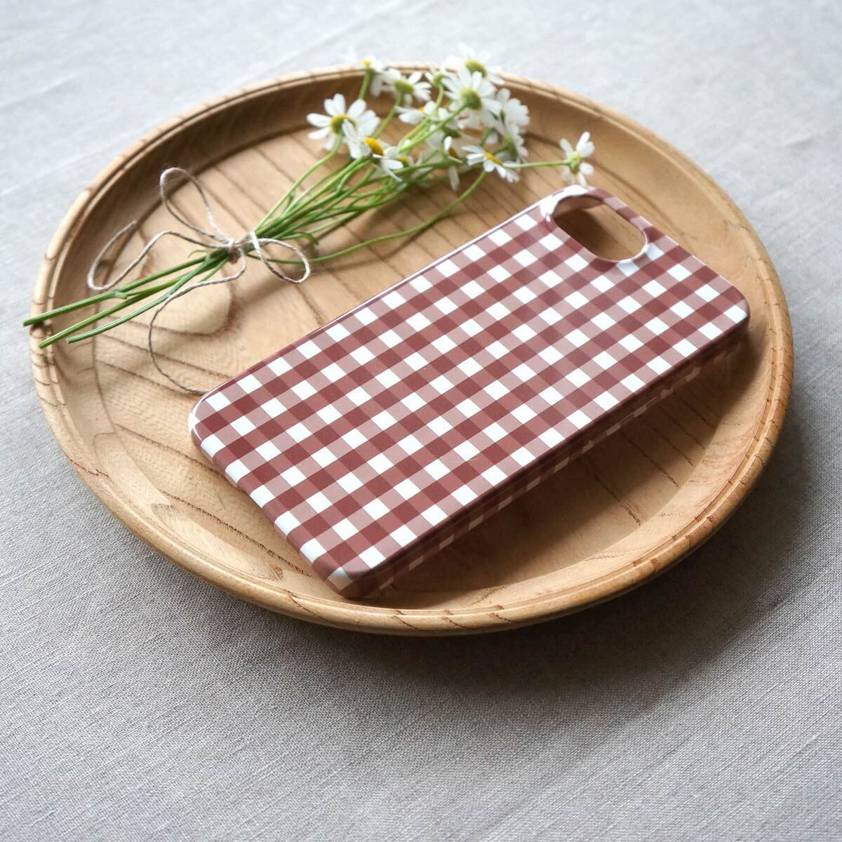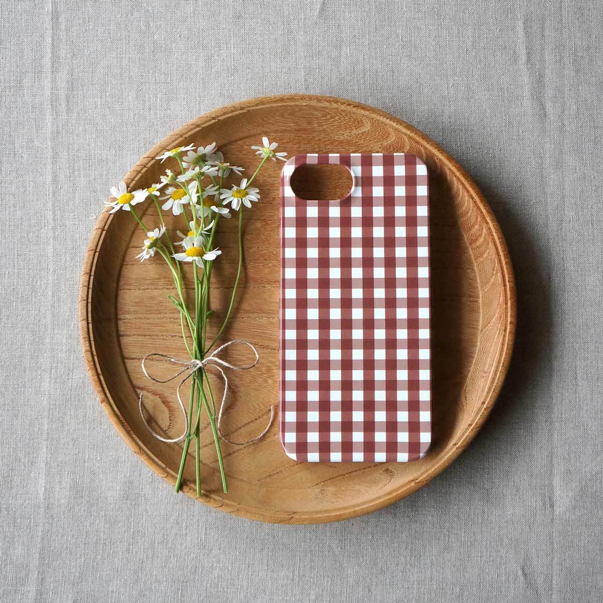 「 tokimeki gingham check( chocolate )」<ホワイトケース>【 側表面印刷 iPhoneケース 】