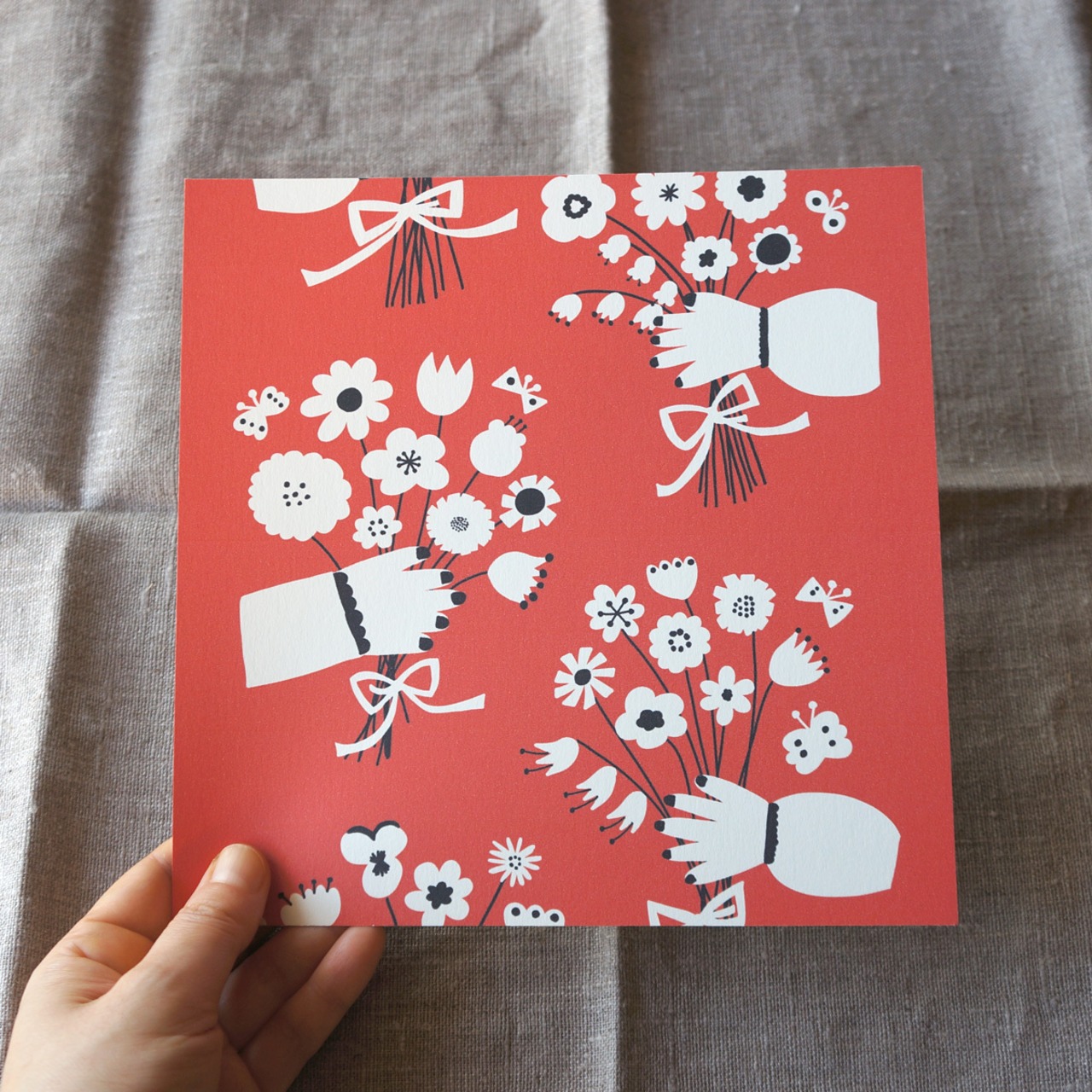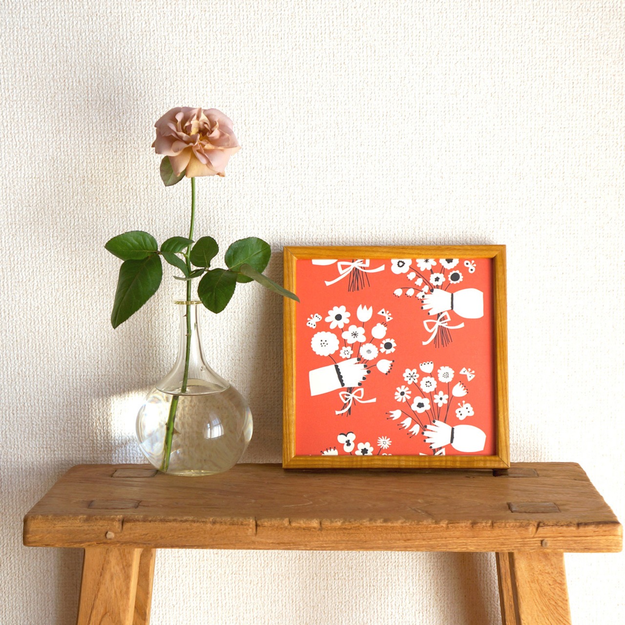 「 bouquet (orange red) 」20cm角ポスター