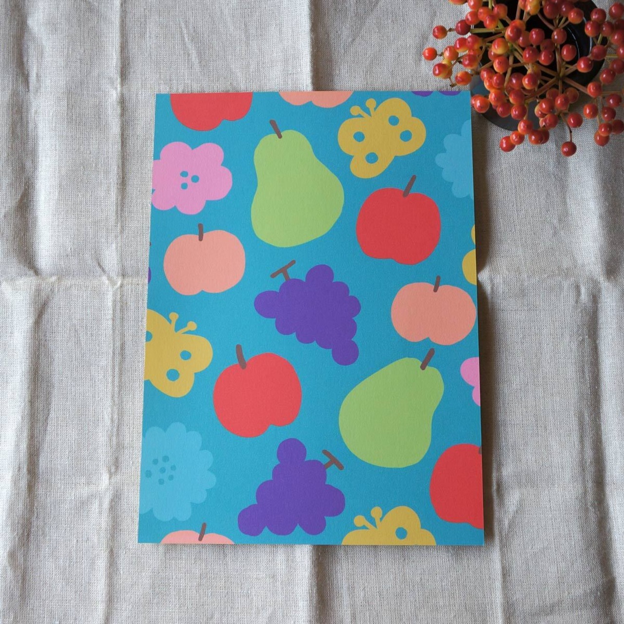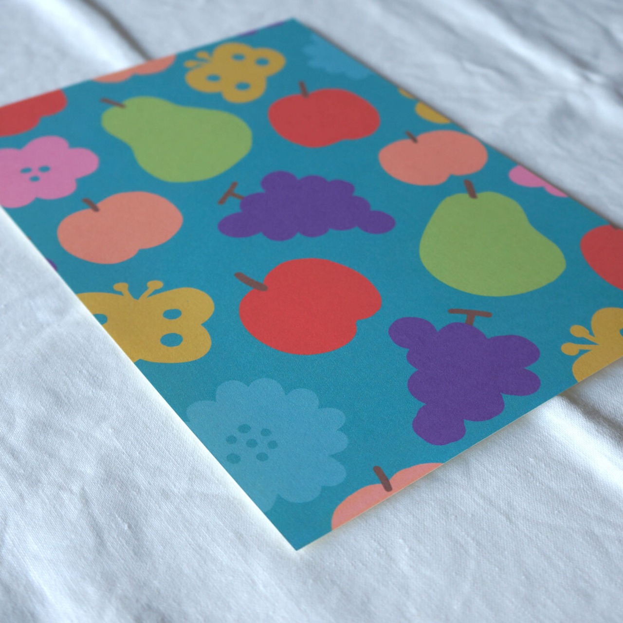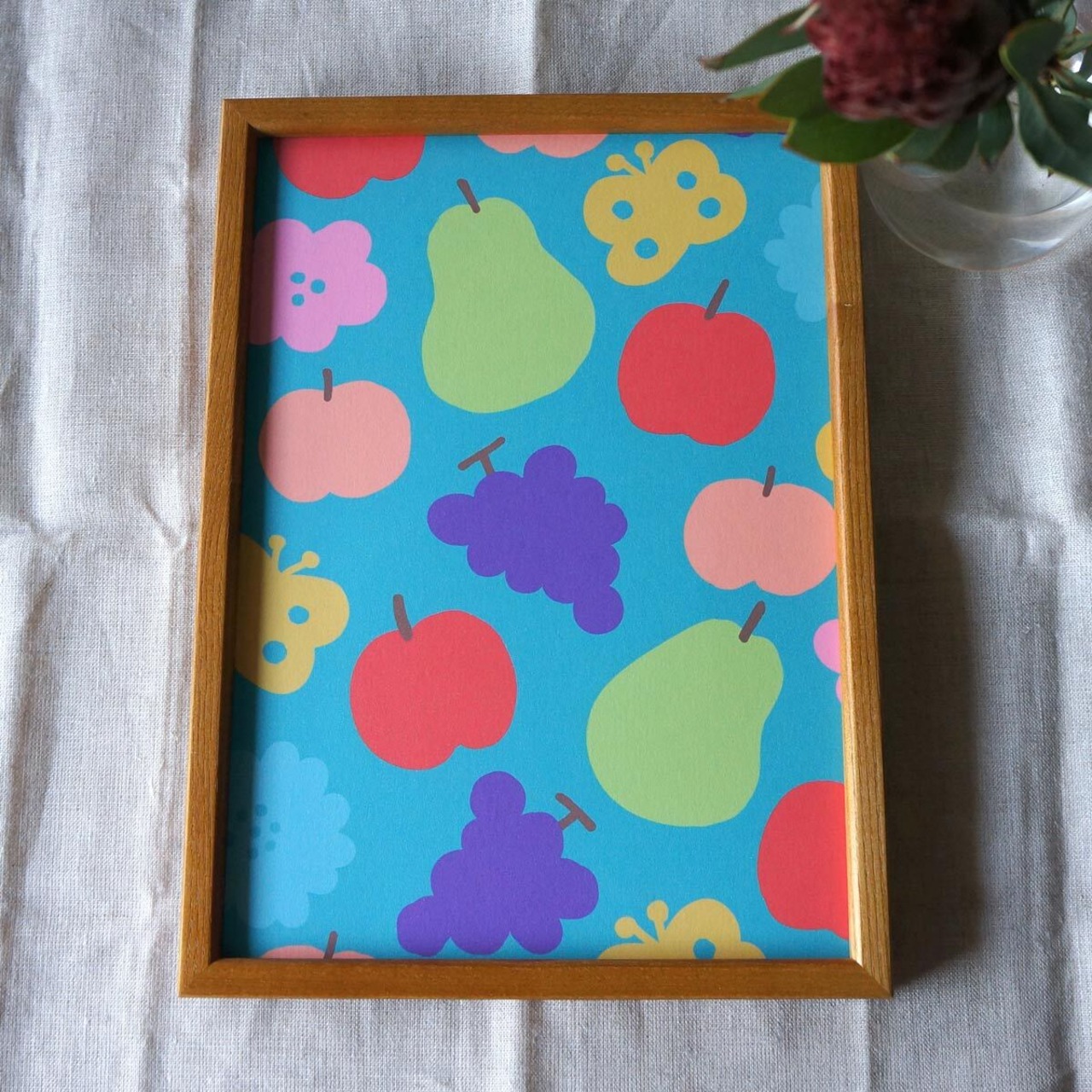 「花と果実と蝶模様(ブルー)」A4ポスター