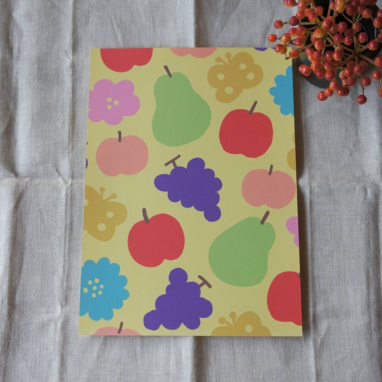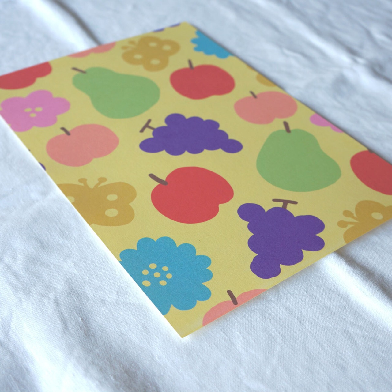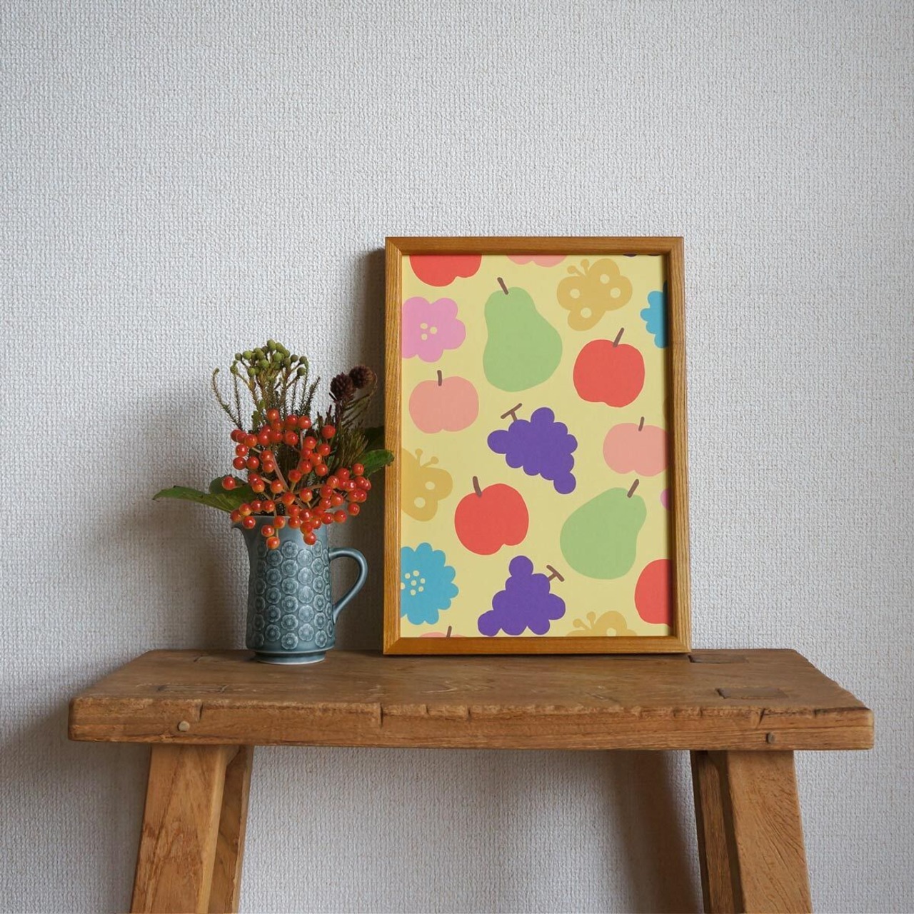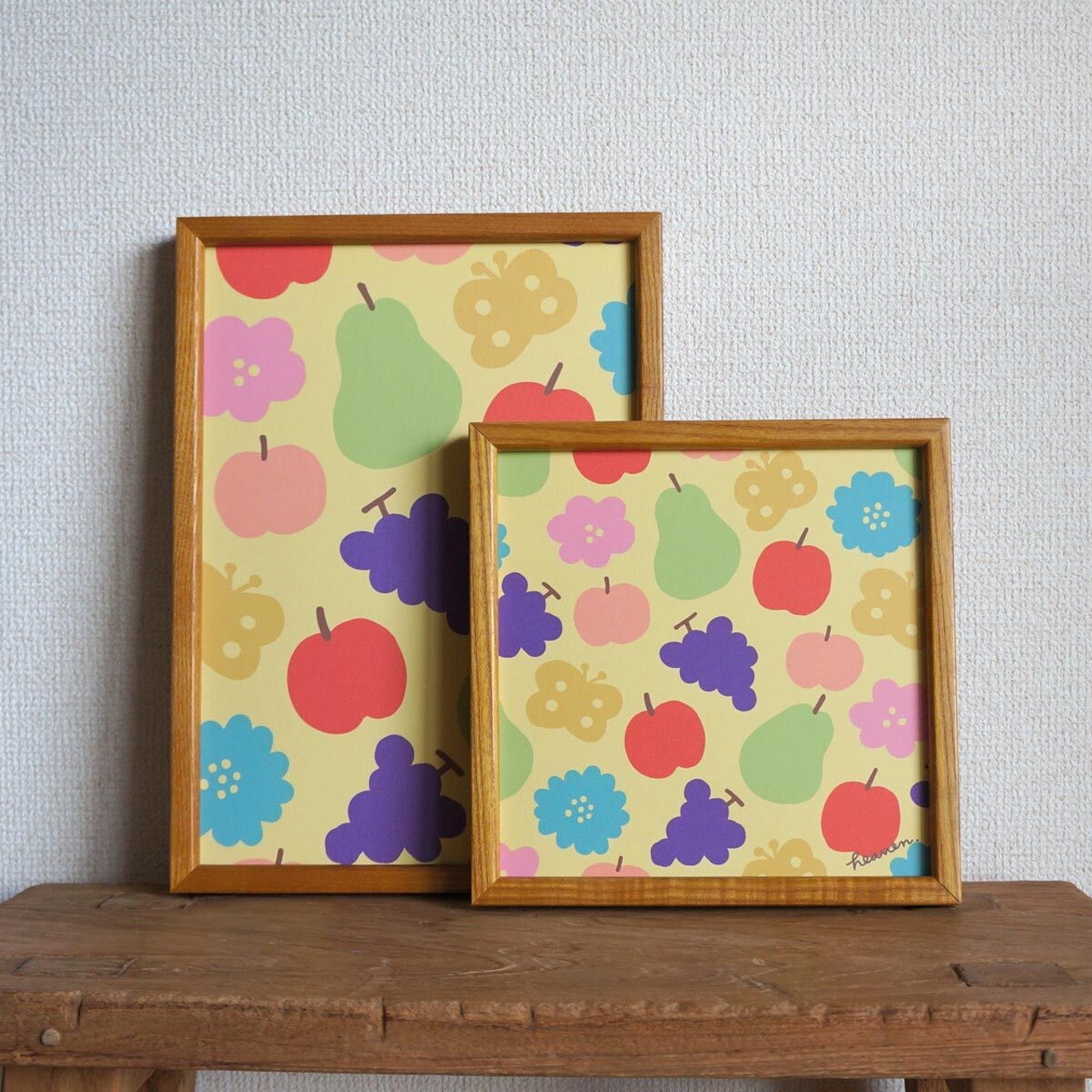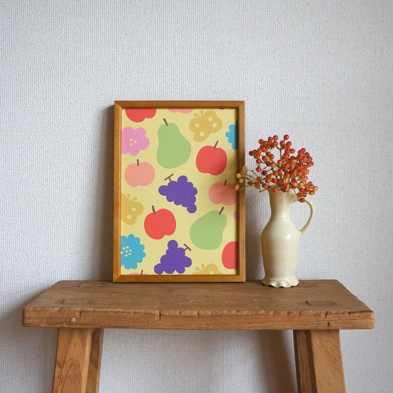 「花と果実と蝶模様(イエロー)」A4ポスター
