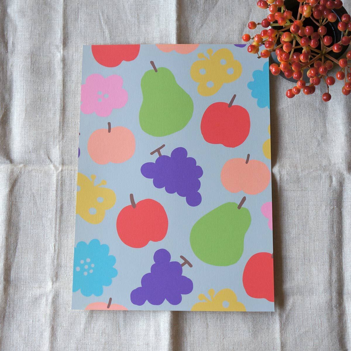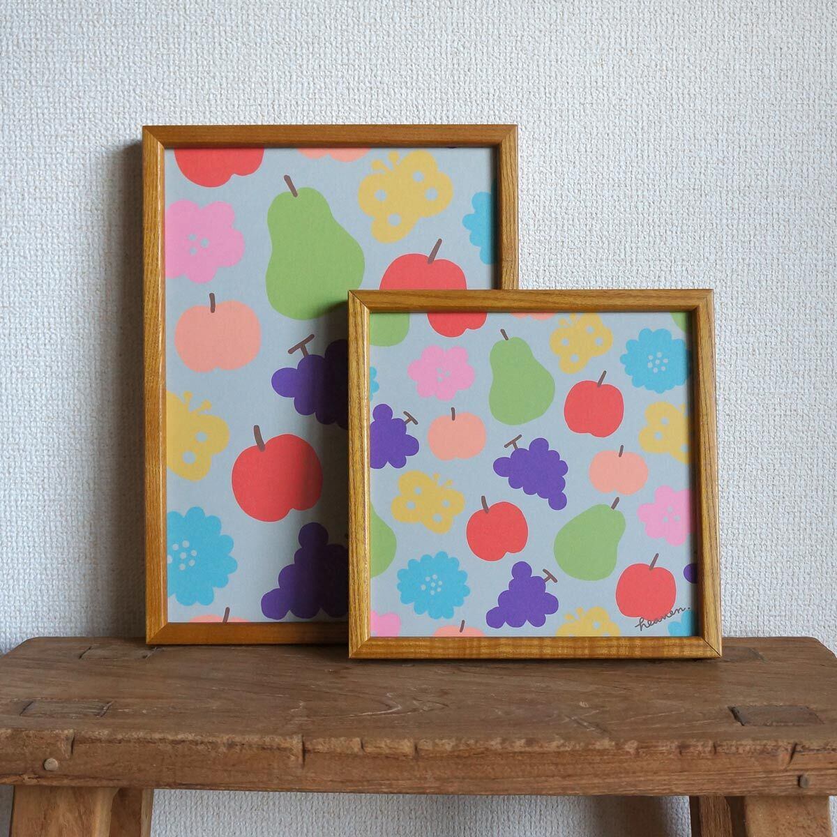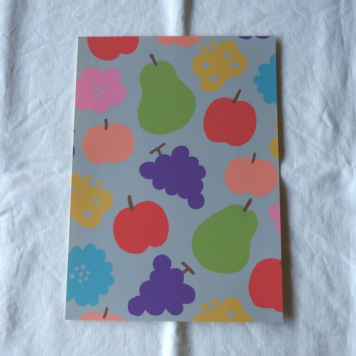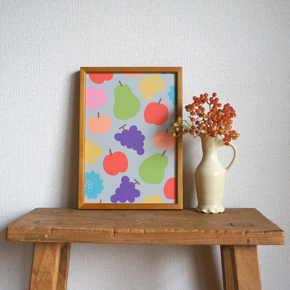 「花と果実と蝶模様(グレイ)」A4ポスター