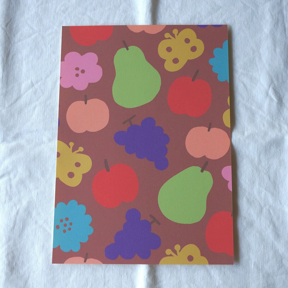 「花と果実と蝶模様(ブラウン)」A4ポスター