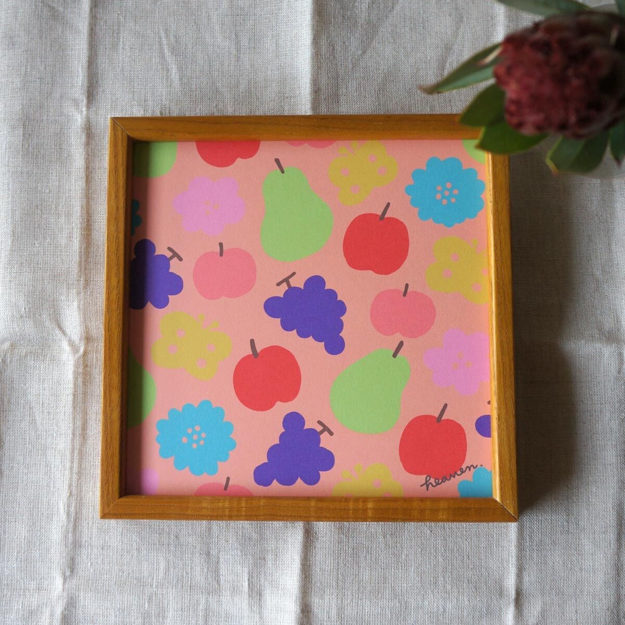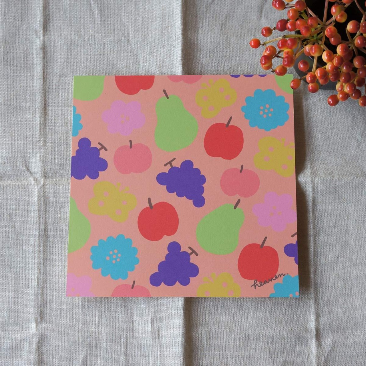 「花と果実と蝶模様(ピーチ)」20cm角ポスター