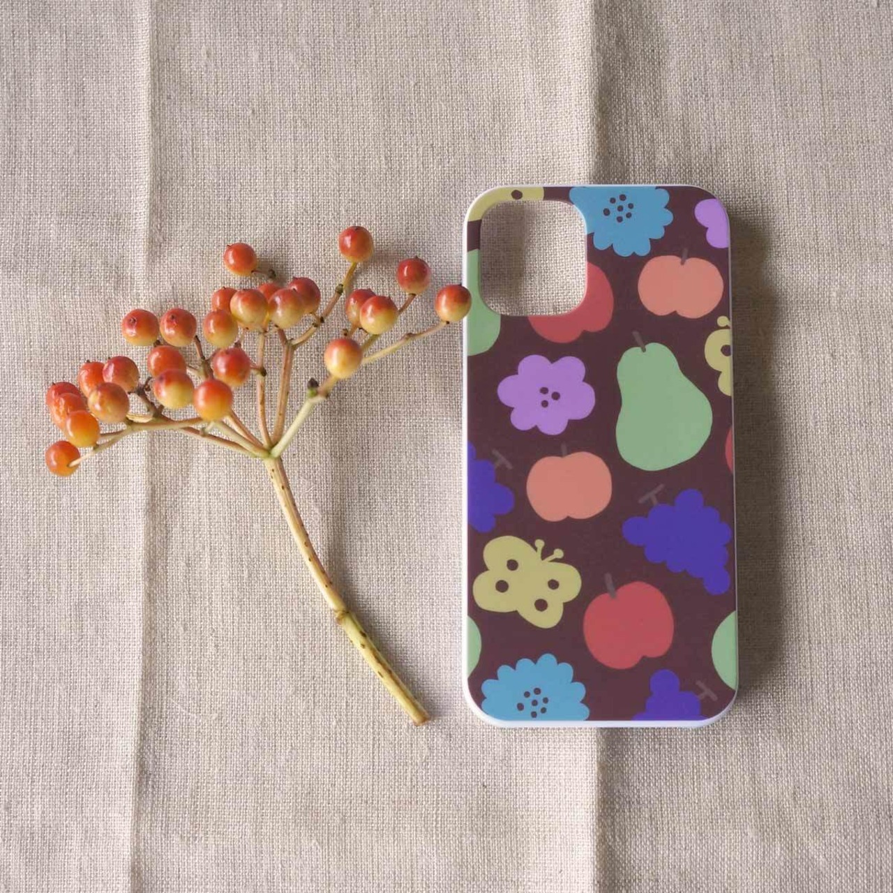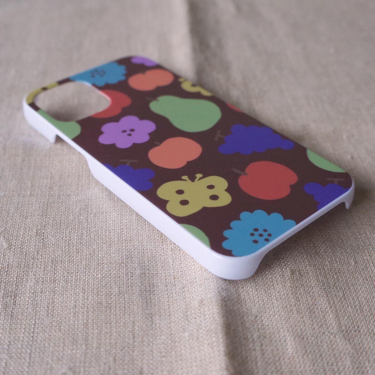 「花と果実と蝶模様(brown)」<ホワイトケース>【 表面のみ印刷 】