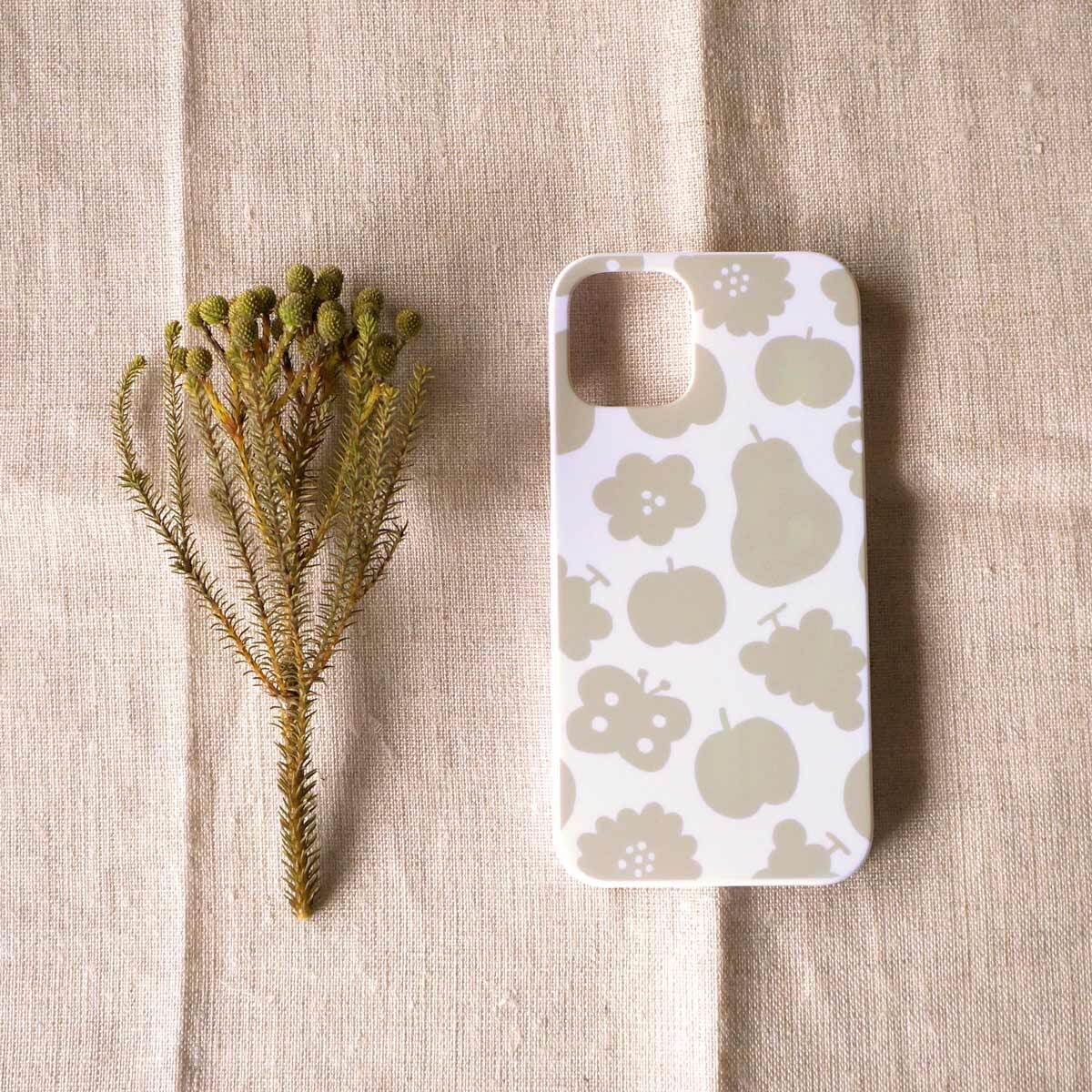 「花と果実と蝶模様(ベージュ)」<ホワイトケース>【 表面のみ印刷 】