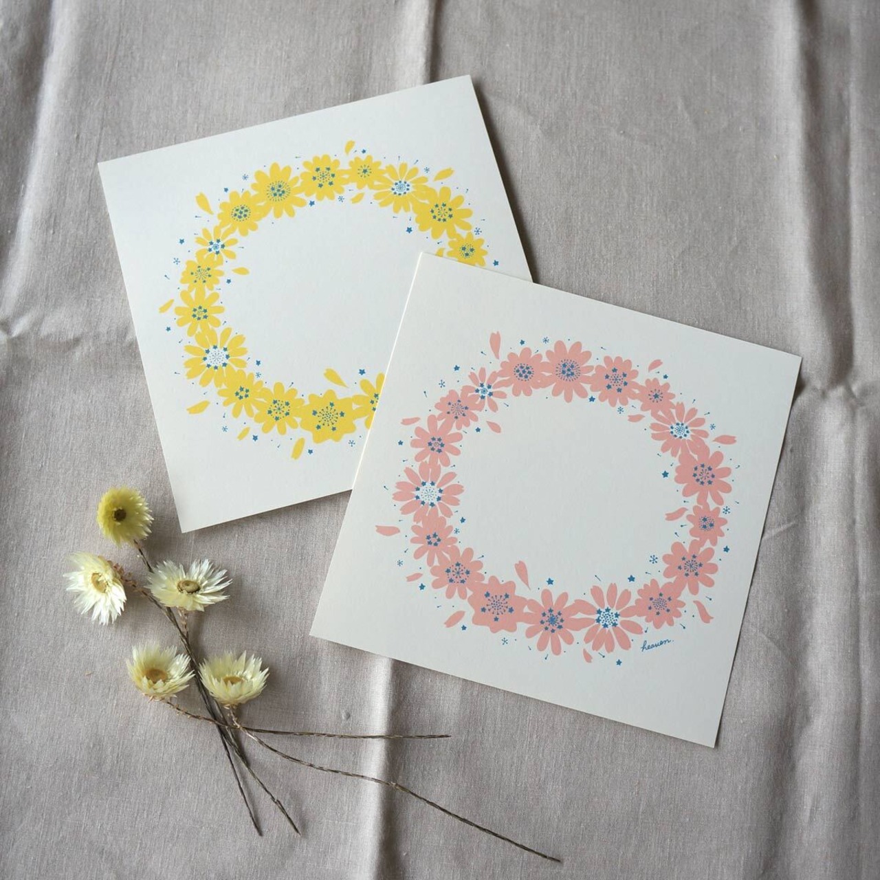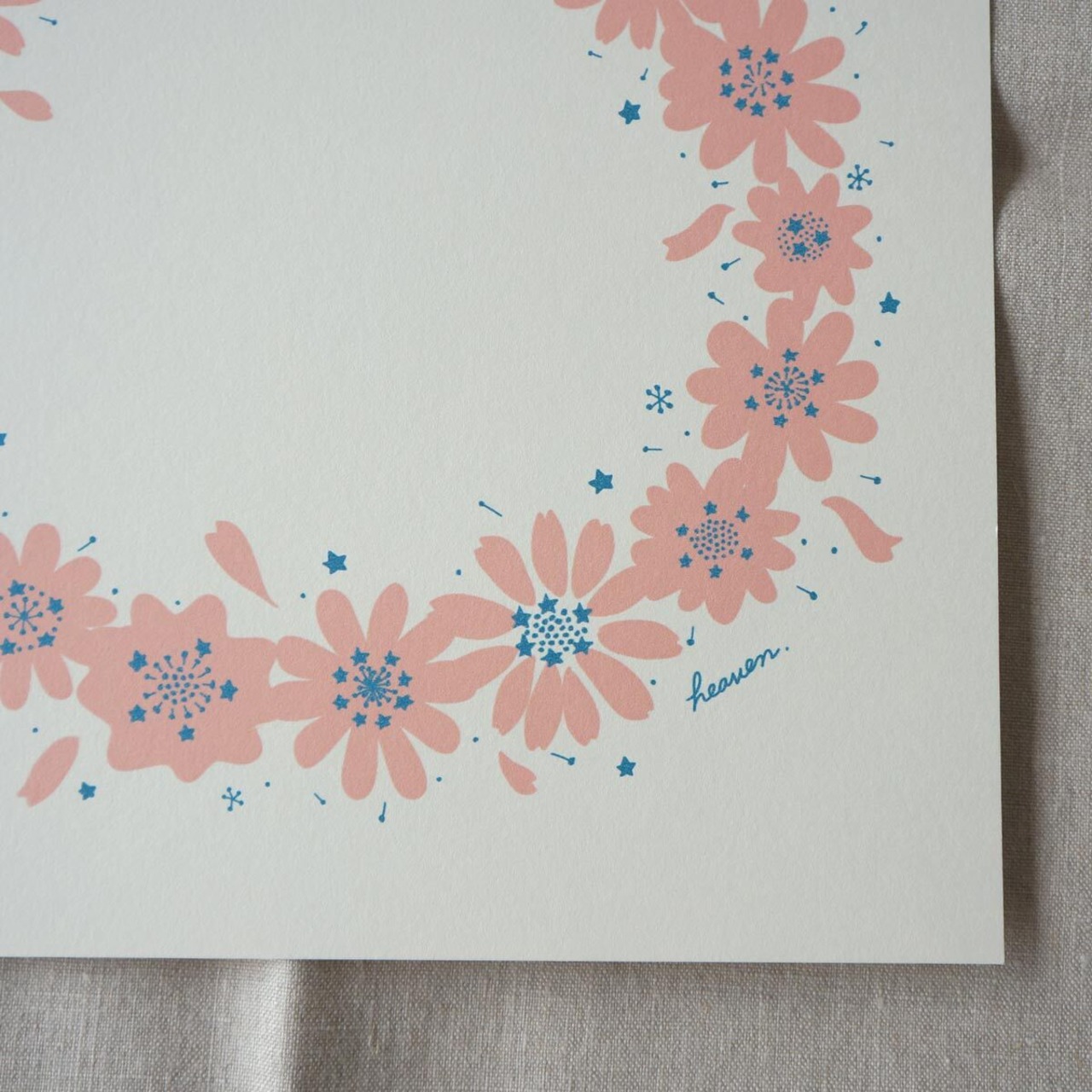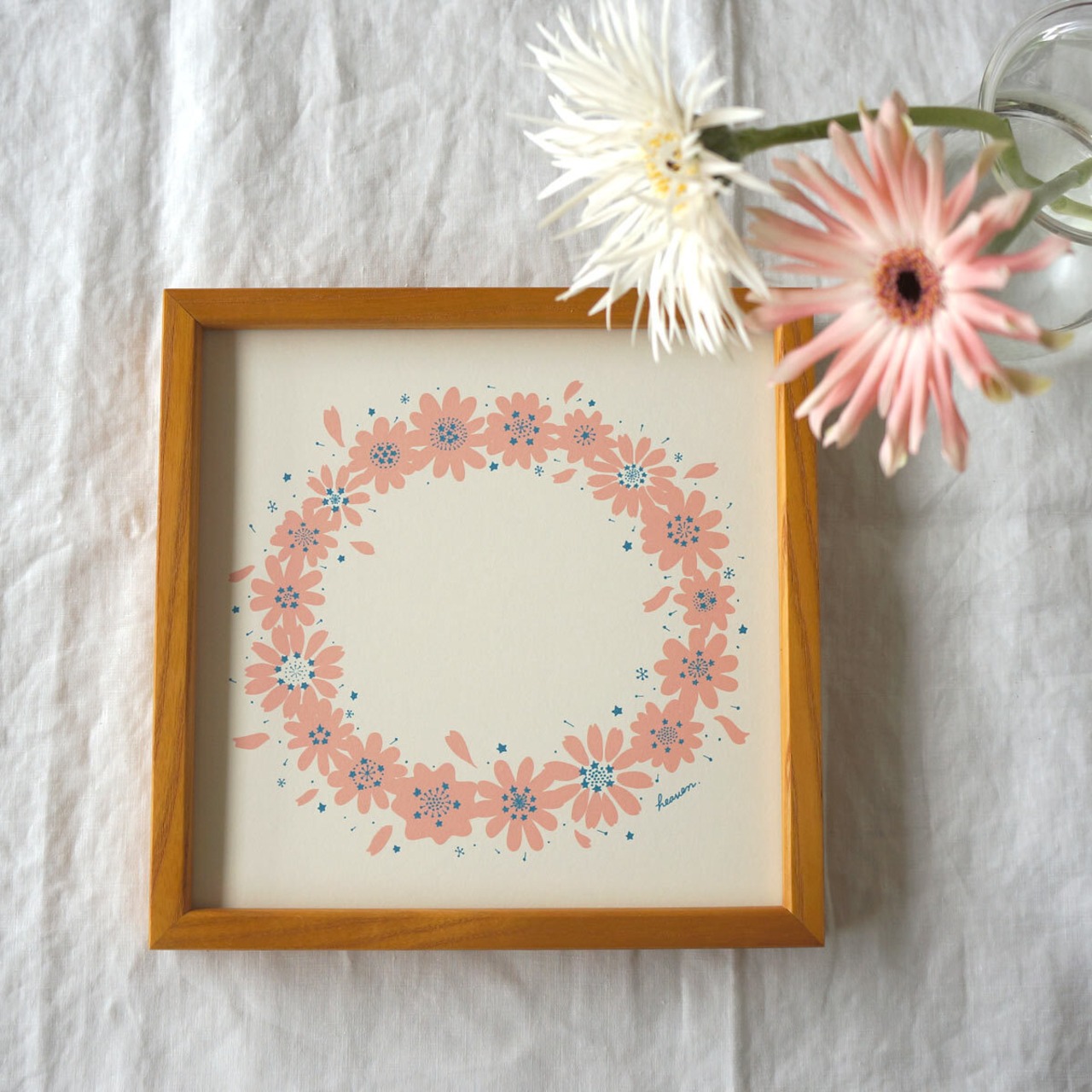 「 twinkle flower wreath(ラムネピンク)」20cm角ポスター
