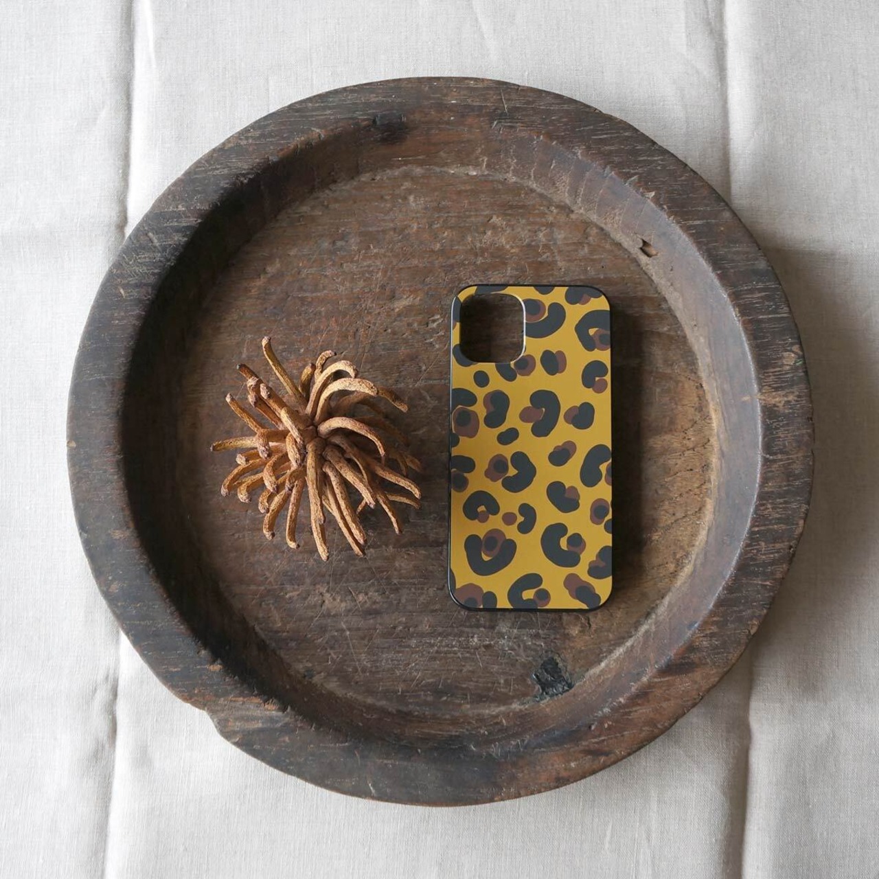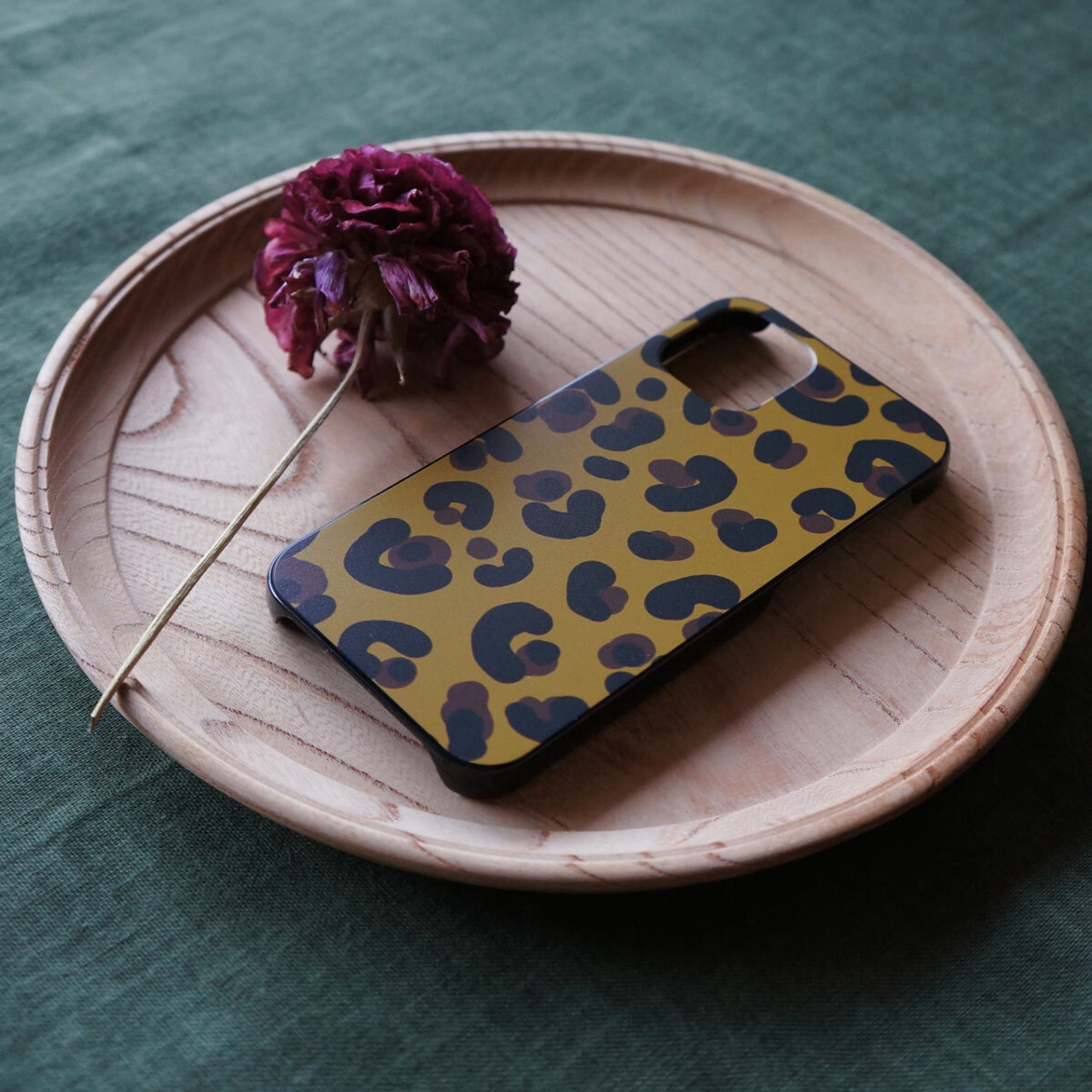 「 fuwa fuwa leopard( イエローブラウン )」<ブラックケース>【 表面のみ印刷 】