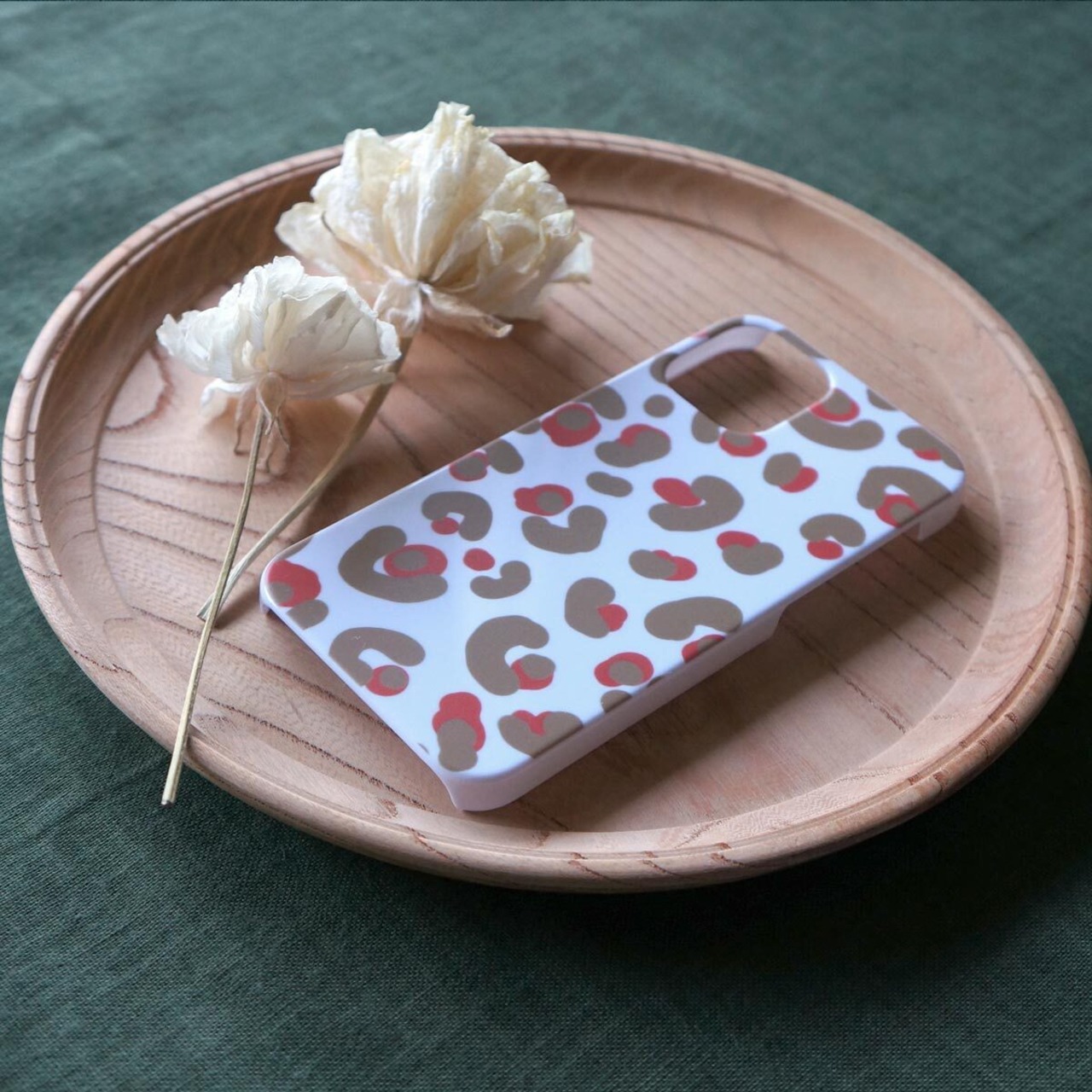 「 fuwa fuwa leopard( オレンジカーキ )」<ホワイトケース>【 表面のみ印刷 】
