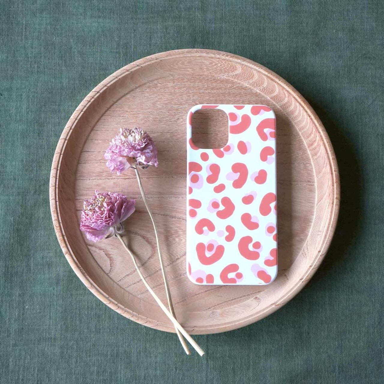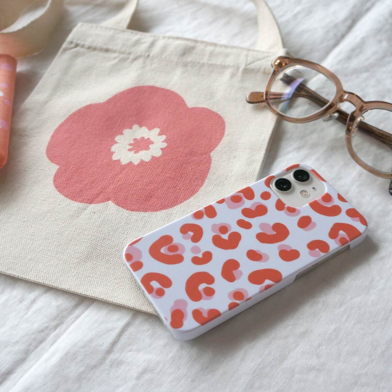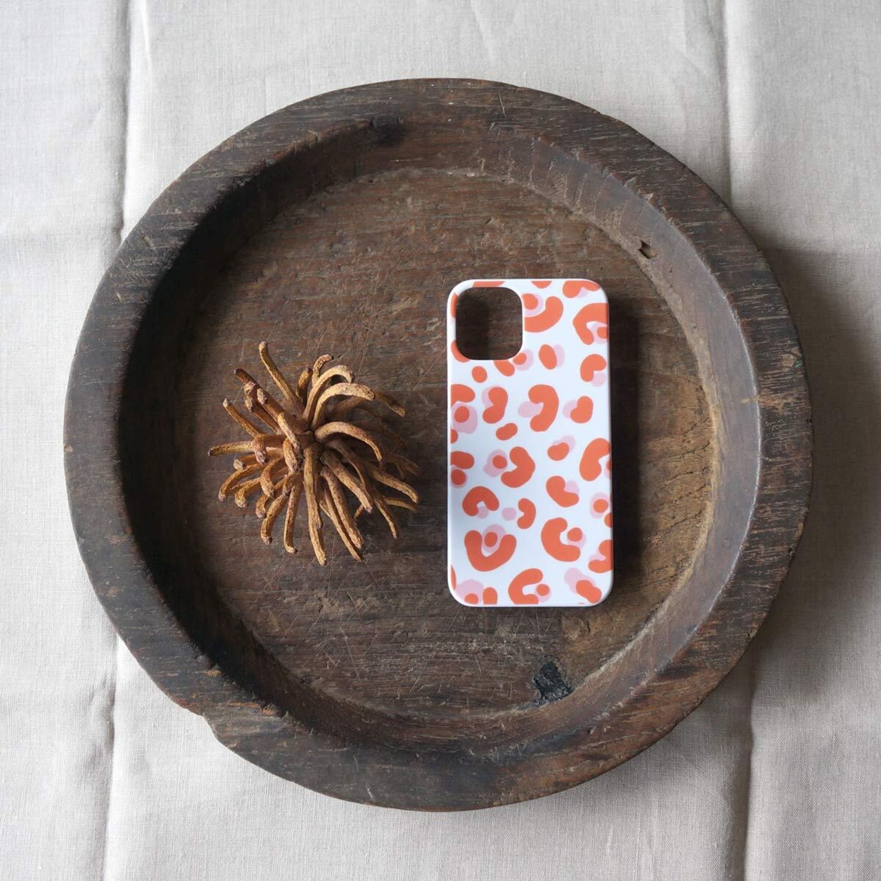 「 fuwa fuwa leopard( コーラルオレンジ )」<ホワイトケース>【 表面のみ印刷 】