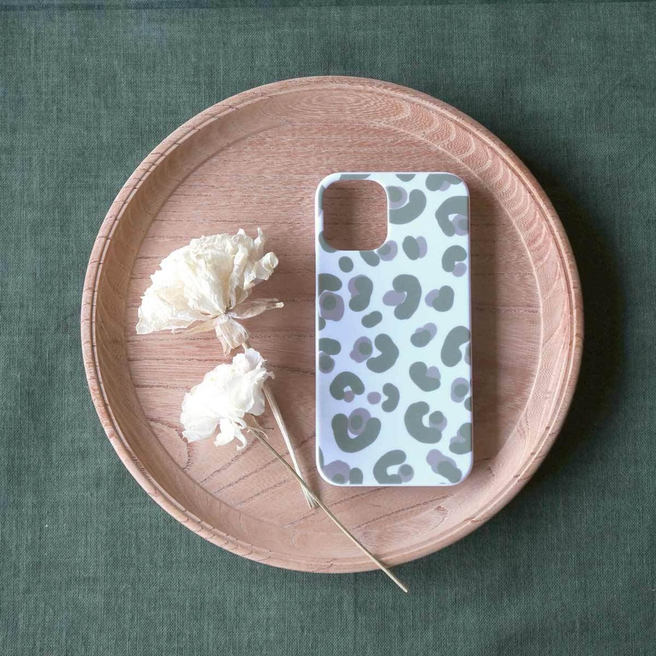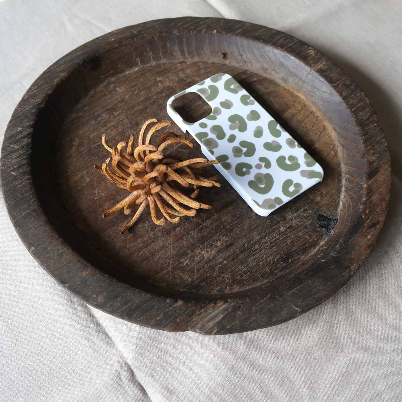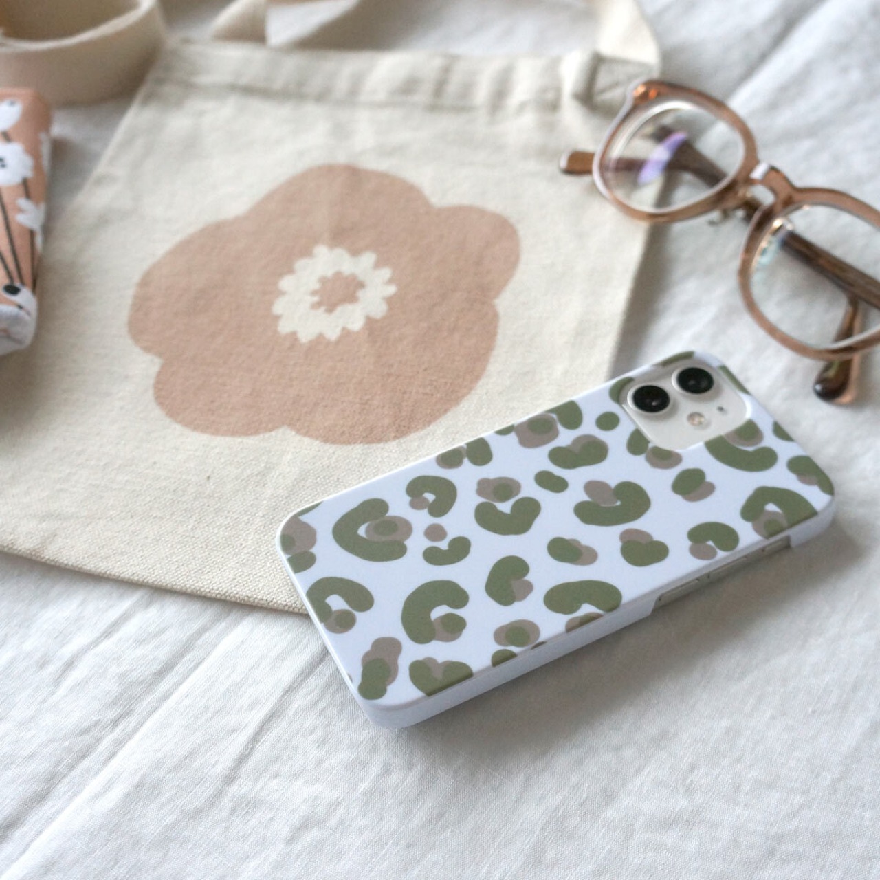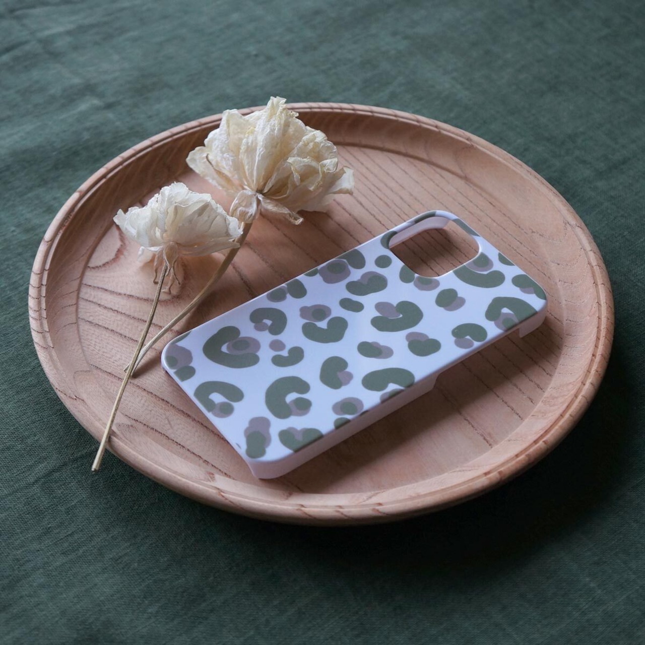 「 fuwa fuwa leopard( モスグリーン )」<ホワイトケース>【 表面のみ印刷 】