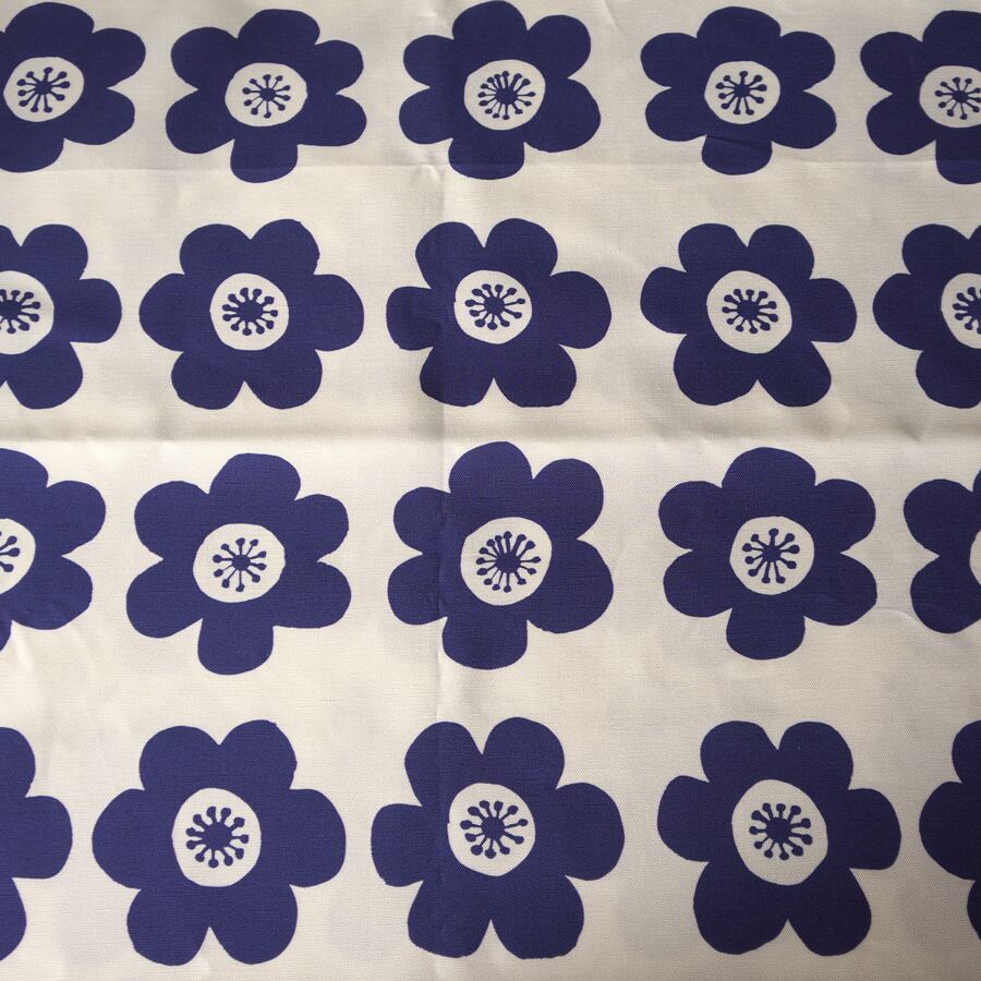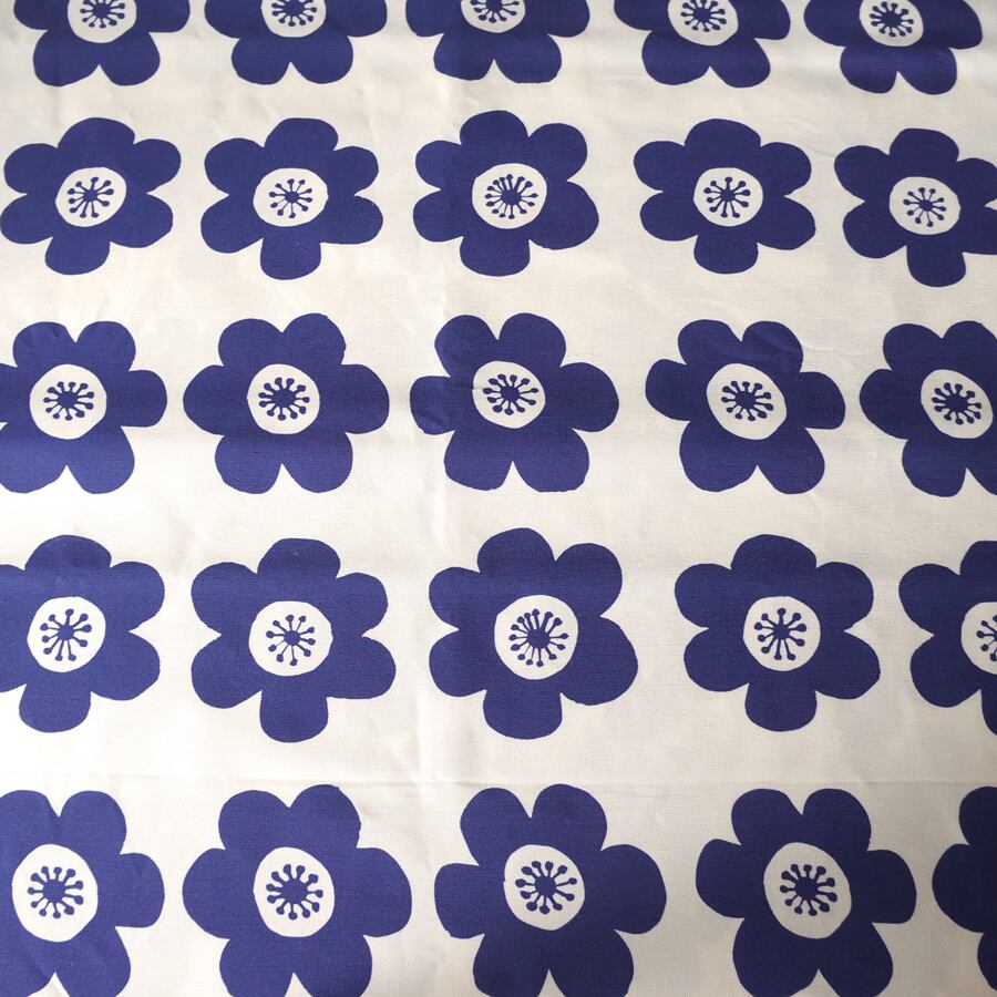 ≪生地≫ anemone (deep blue) リネンコットン 90cm単位(幅137cm) 【受注生産】