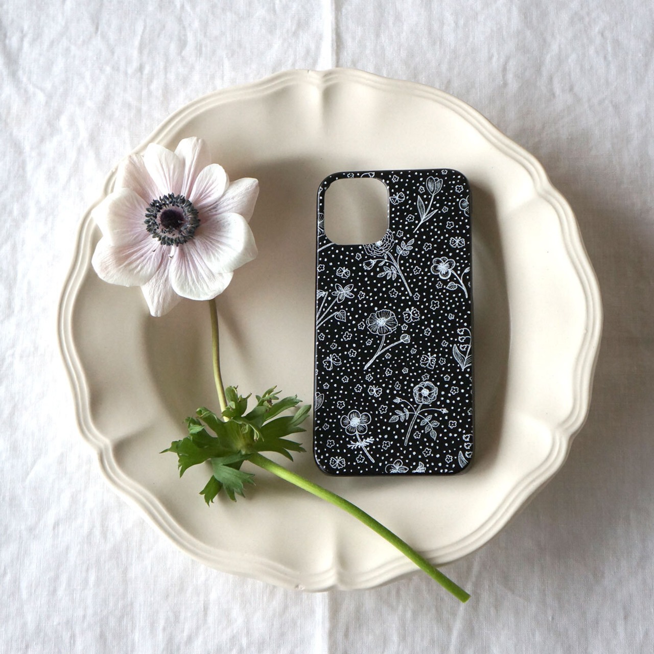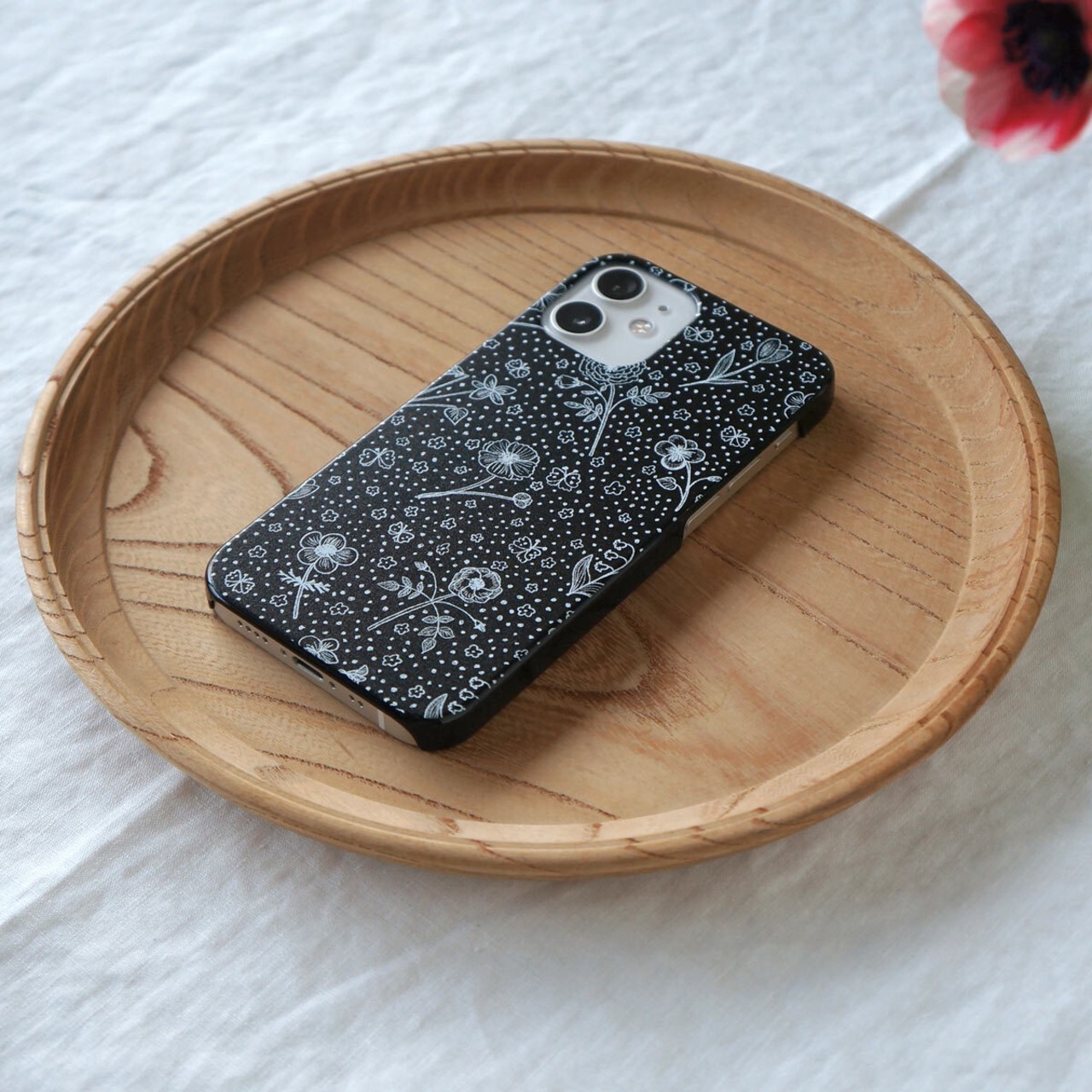「 春の庭( white on black )」<ブラックケース>【 表面のみ印刷 】