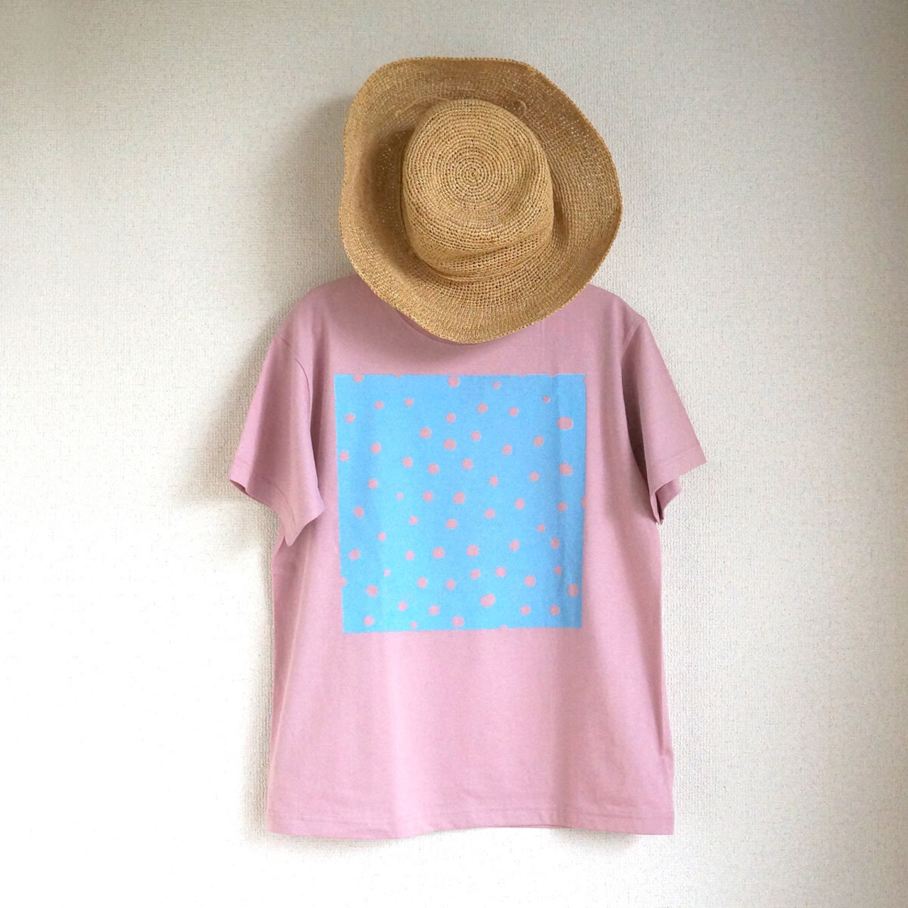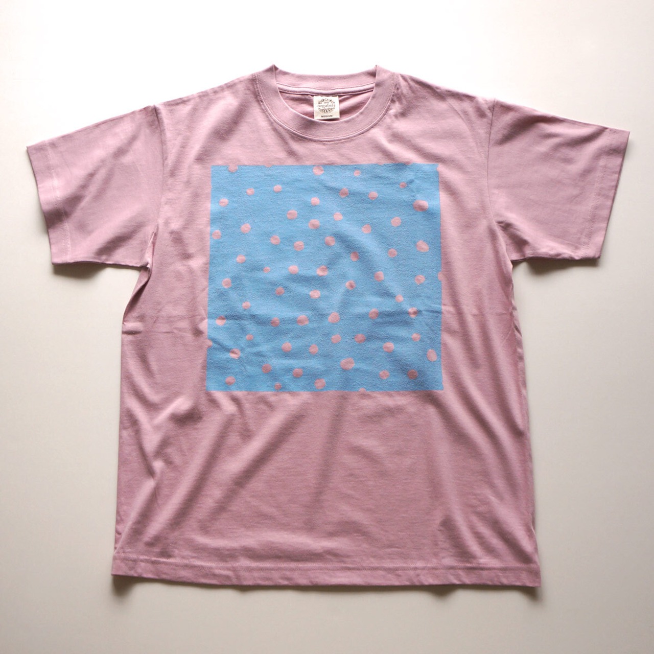 【半袖/長袖】オーガニックコットン「 fuwa fuwa dot( ブルー × ダスティピンク )」Tシャツ