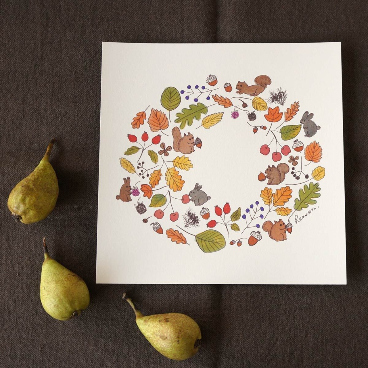 「 minori no mori no wreath( colorful )」20cm角ポスター