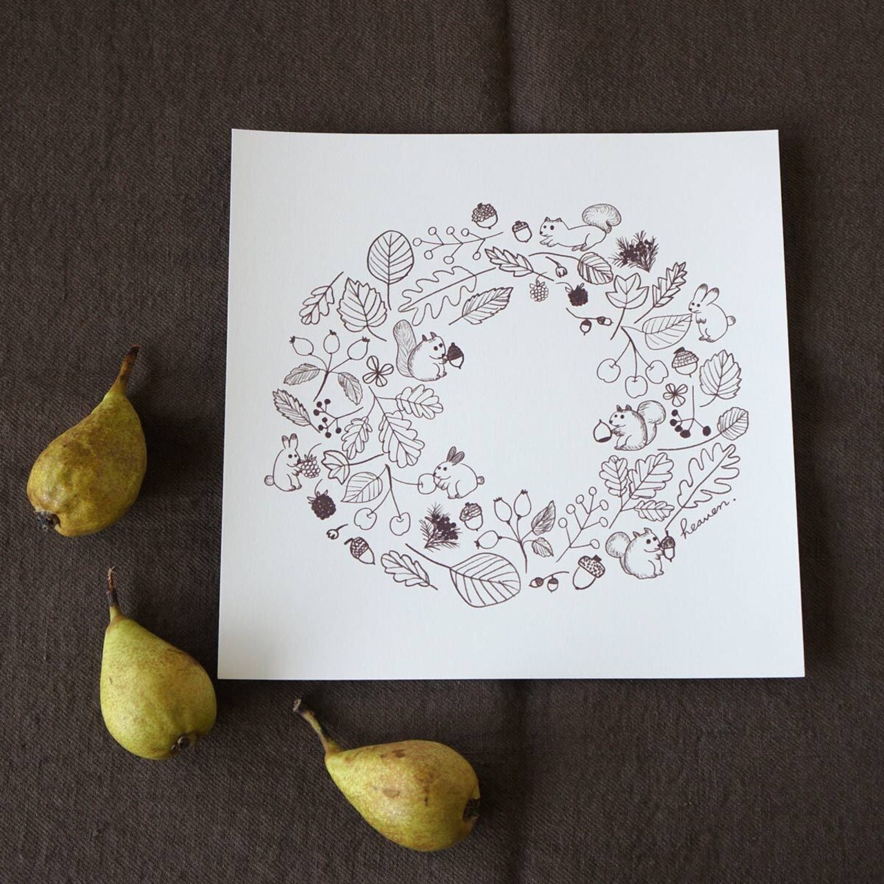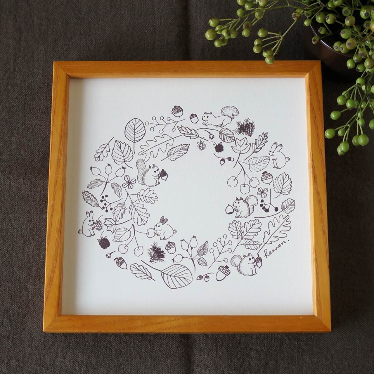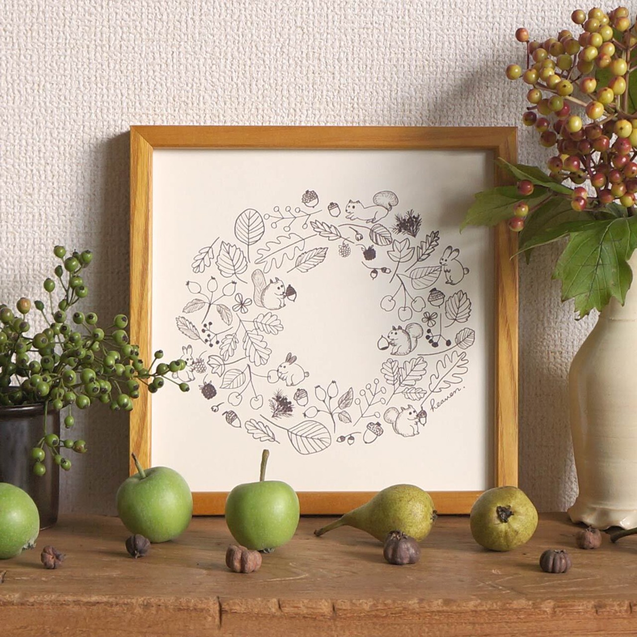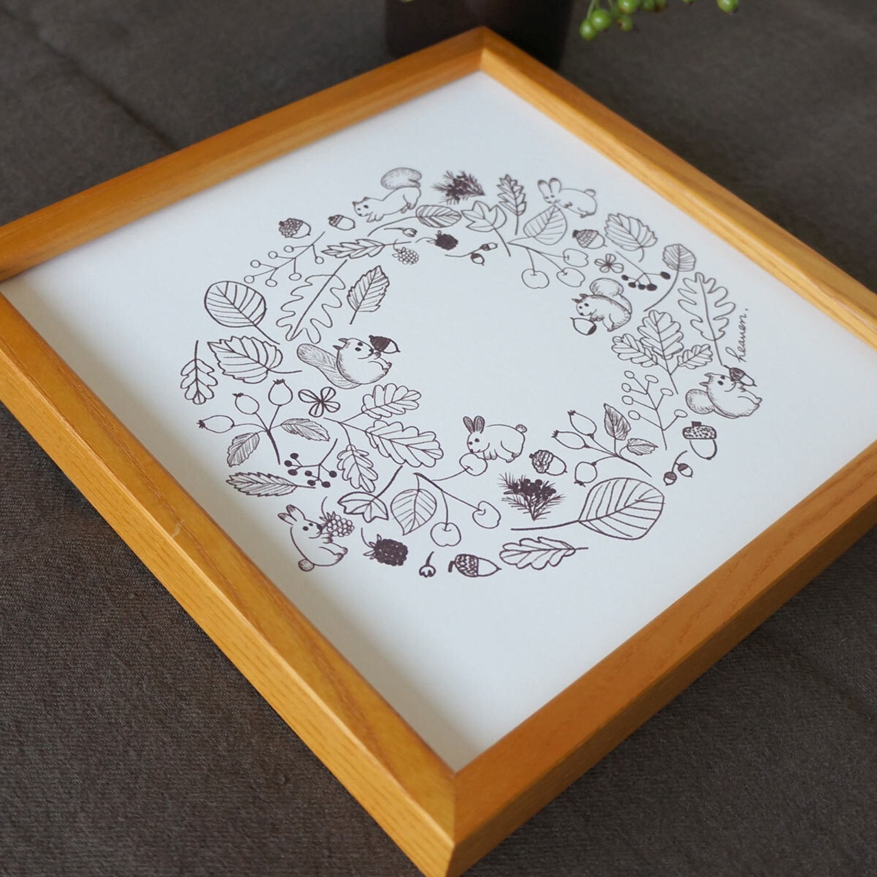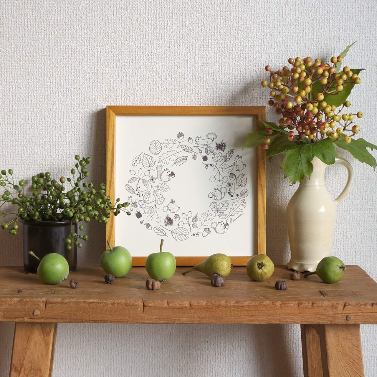 「 minori no mori no wreath( brown sketch )」20cm角ポスター