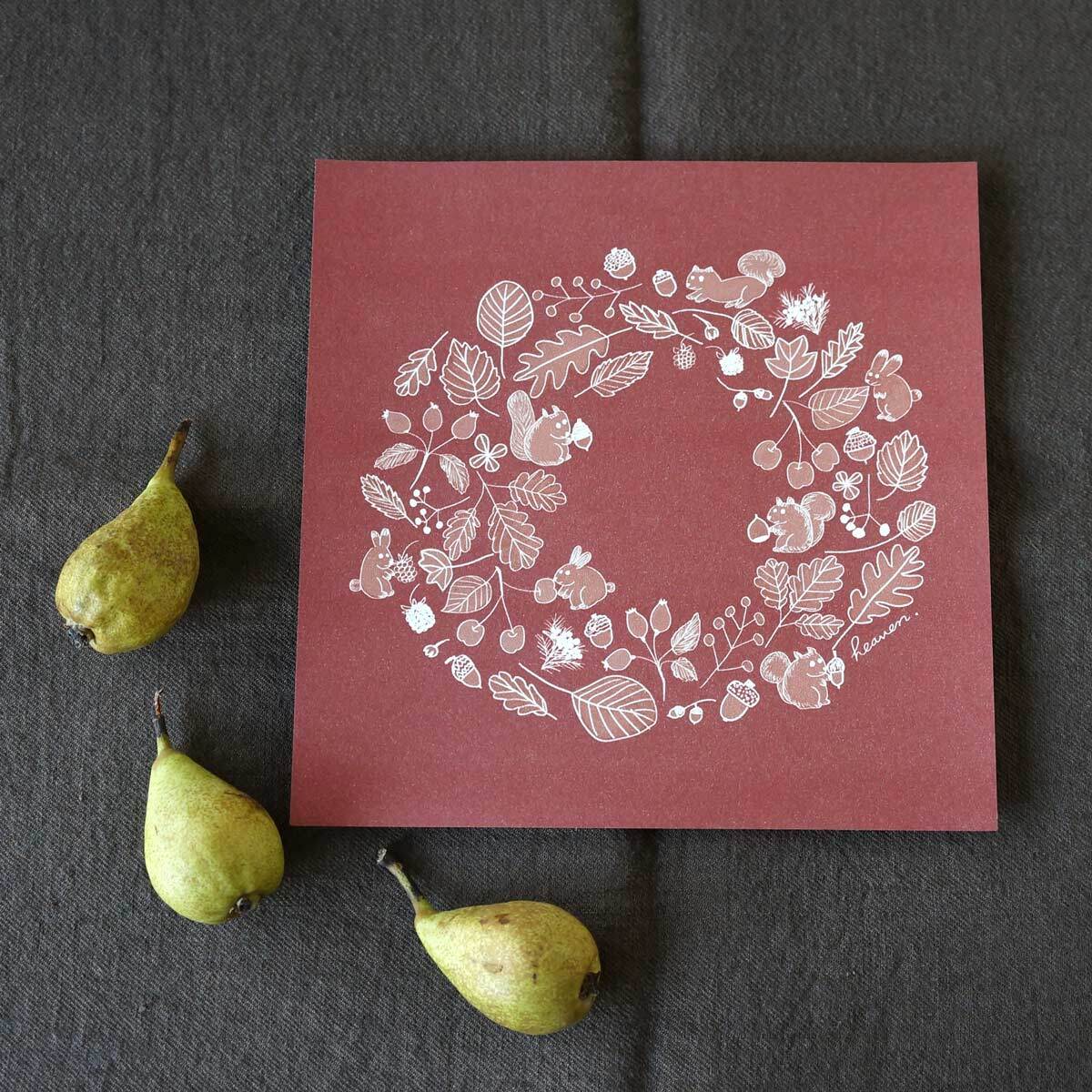 「 minori no mori no wreath( chocolate )」20cm角ポスター