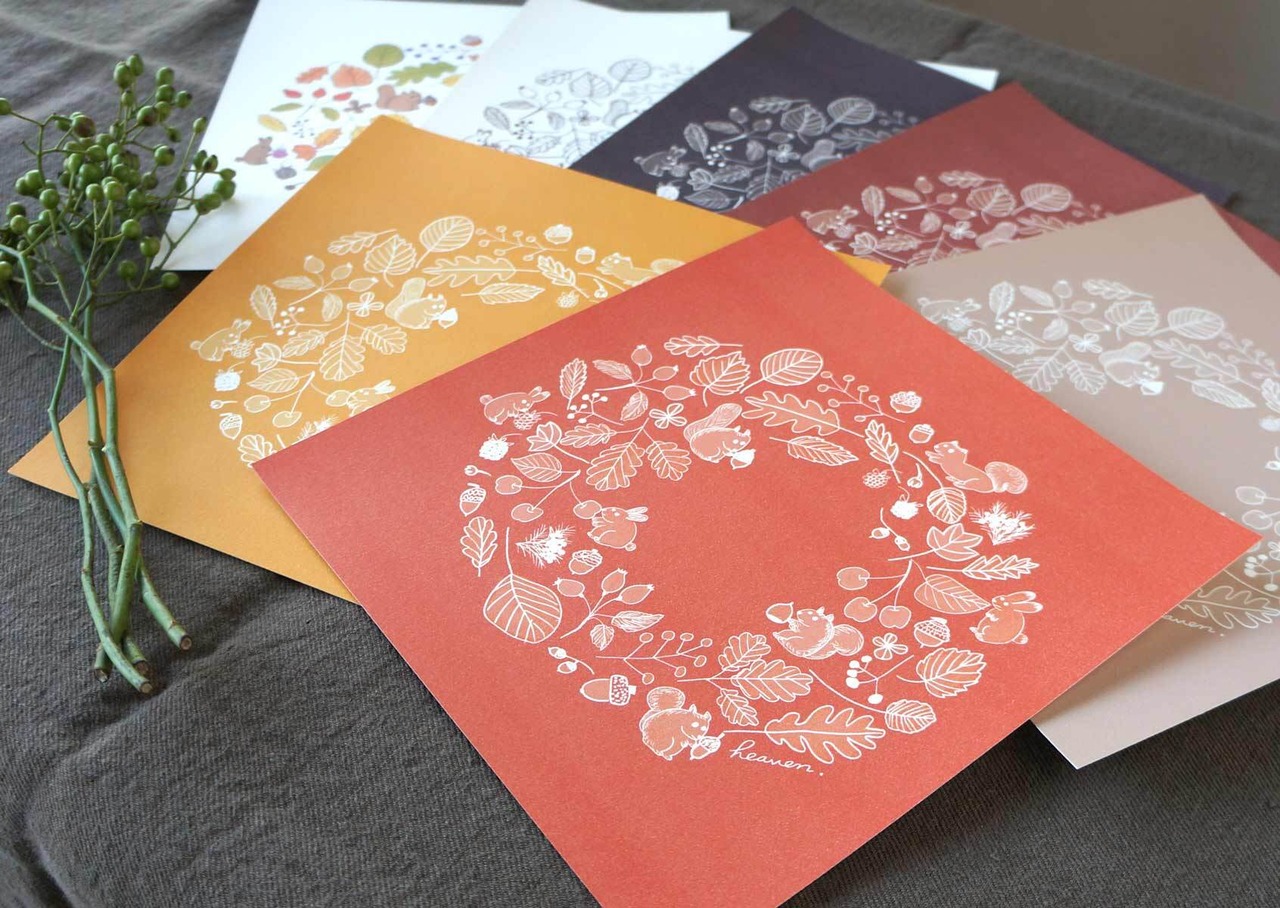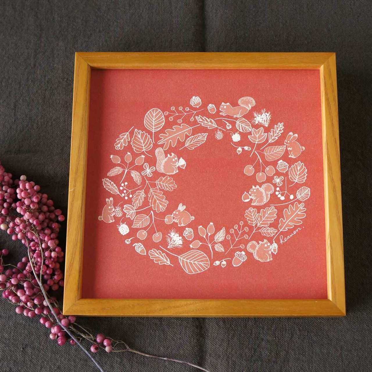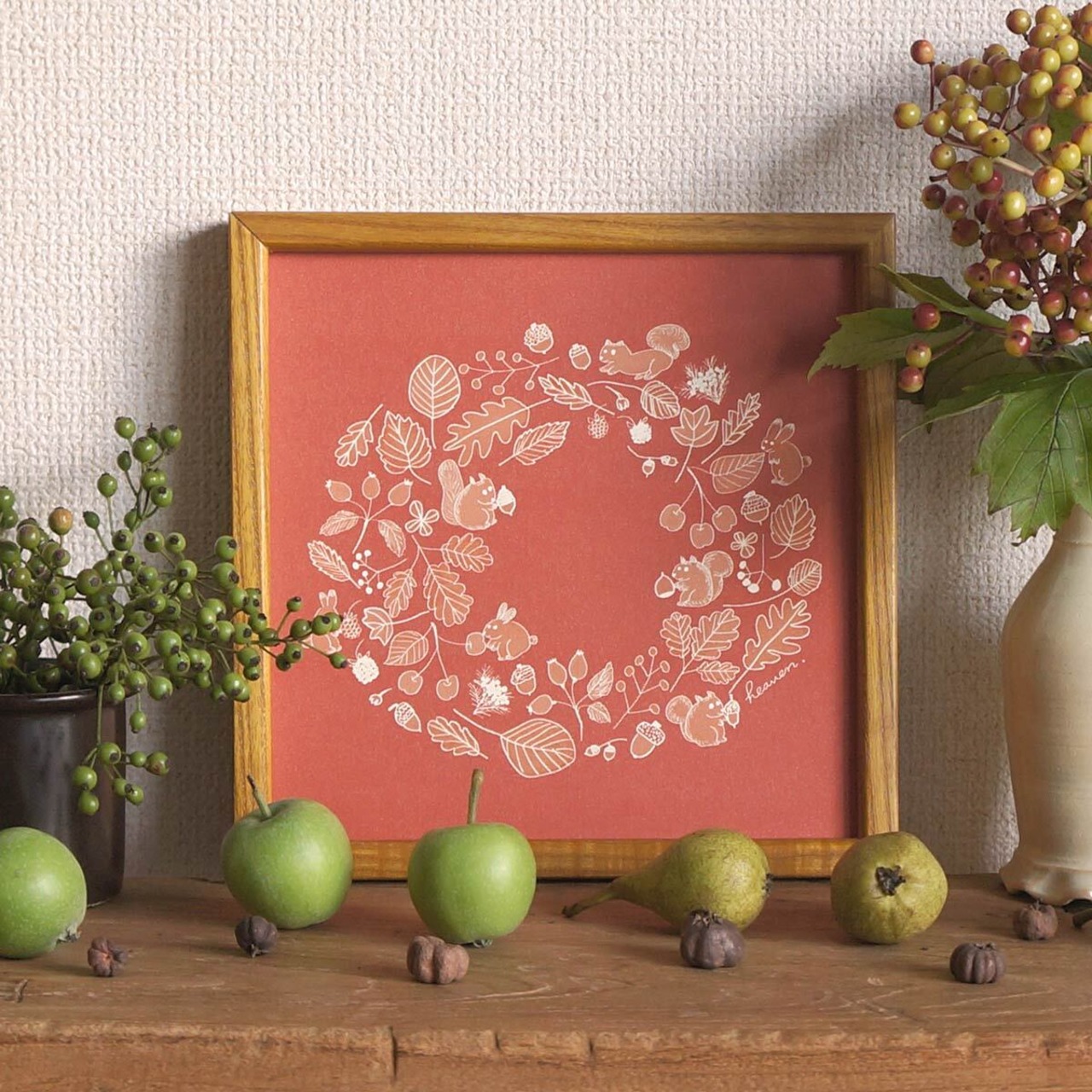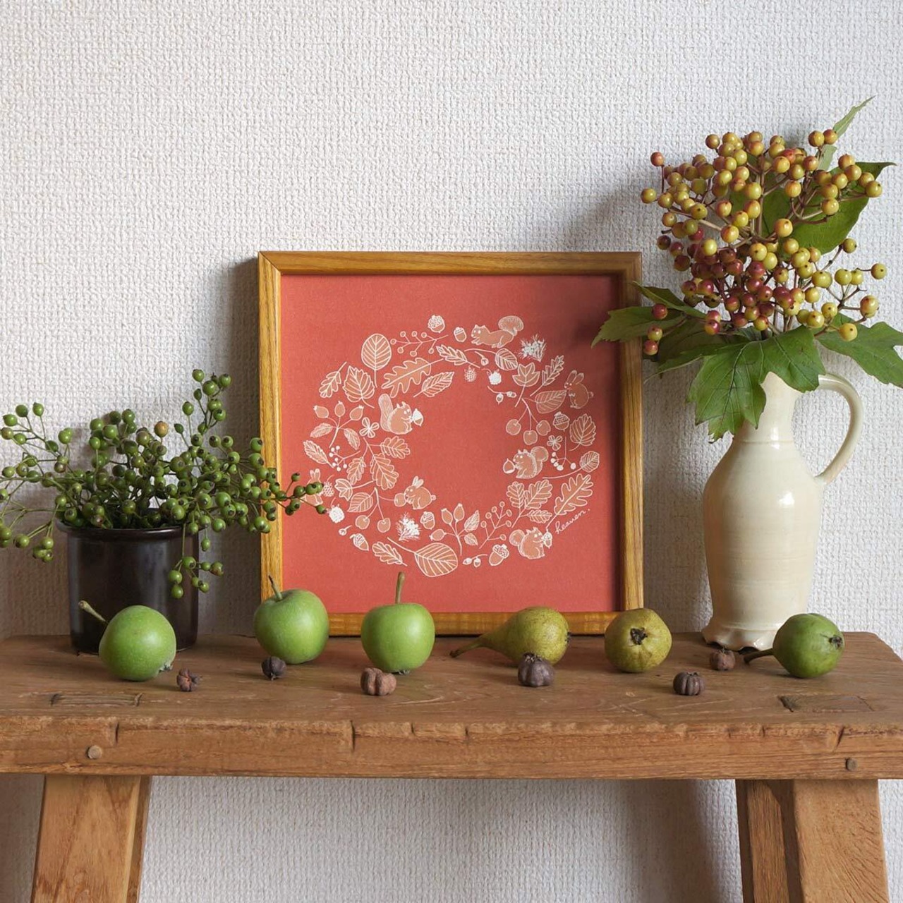 「 minori no mori no wreath( orange brown )」20cm角ポスター