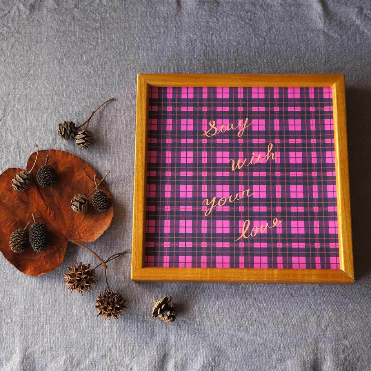 「 nostalgic tartan check( pink )」20cm角ポスター