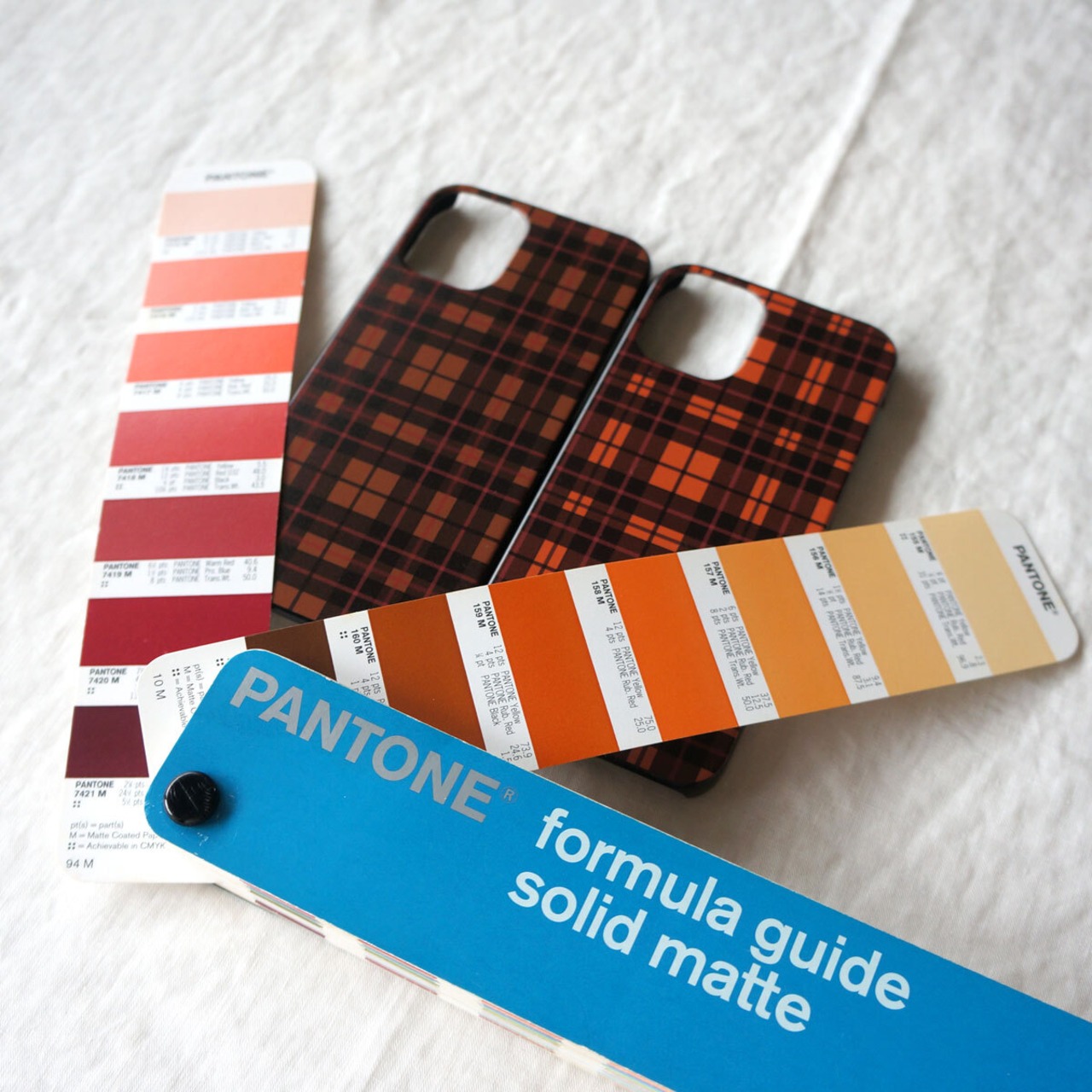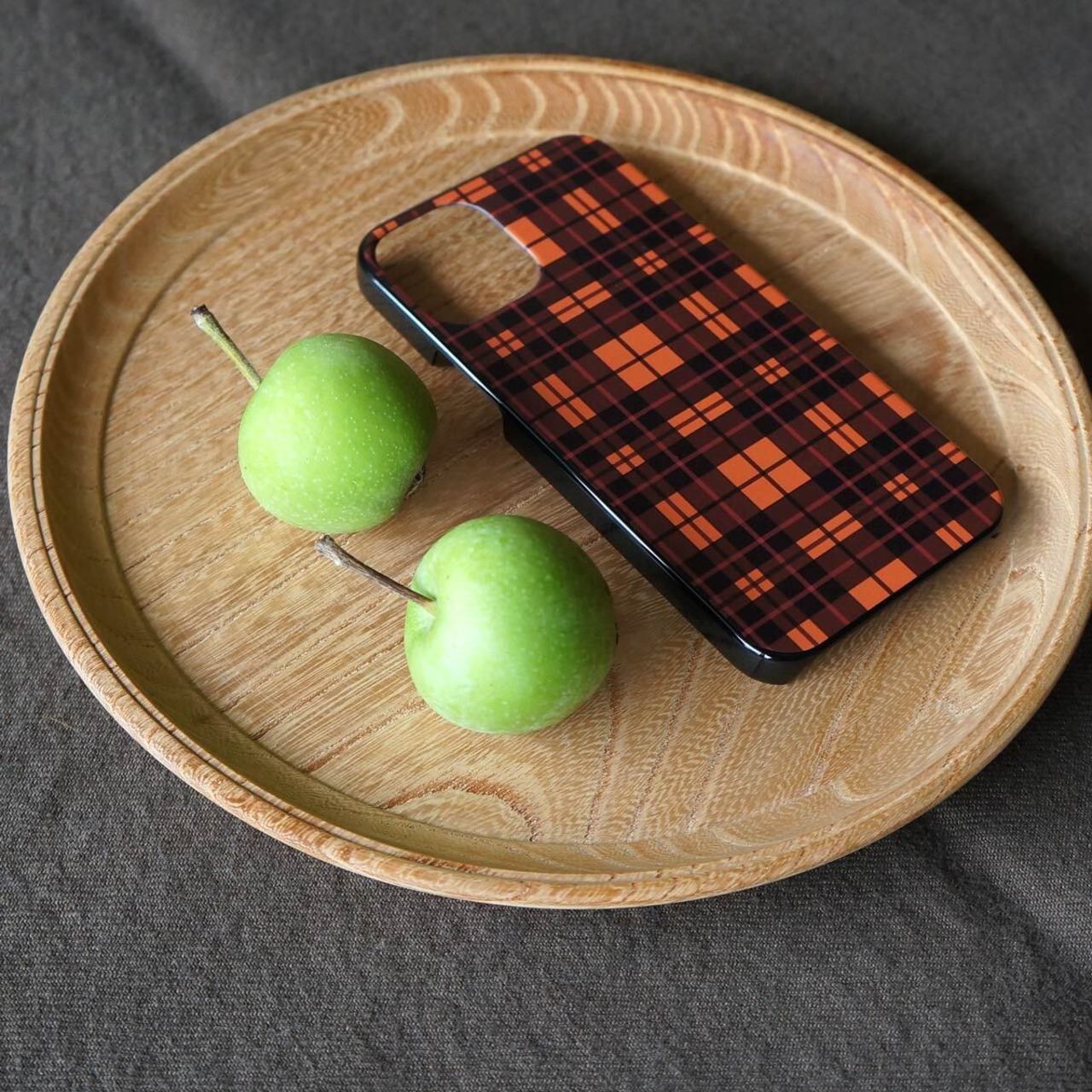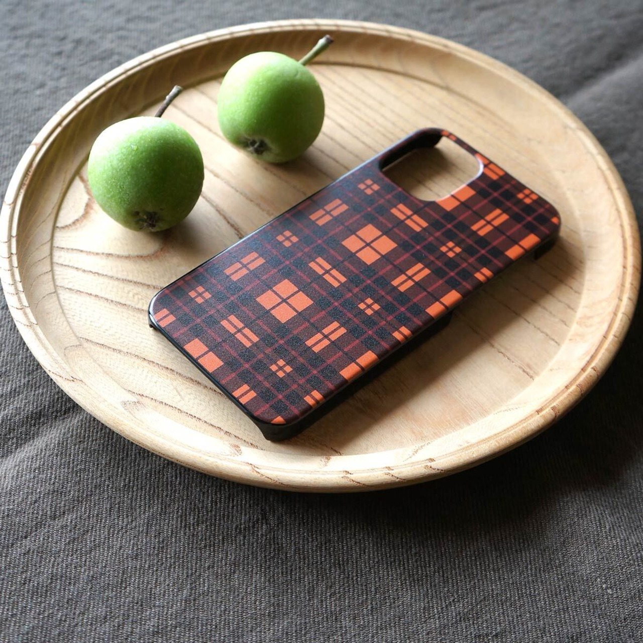 「 nostalgic tartan check( orange )」<ブラックケース>【 表面のみ印刷 】