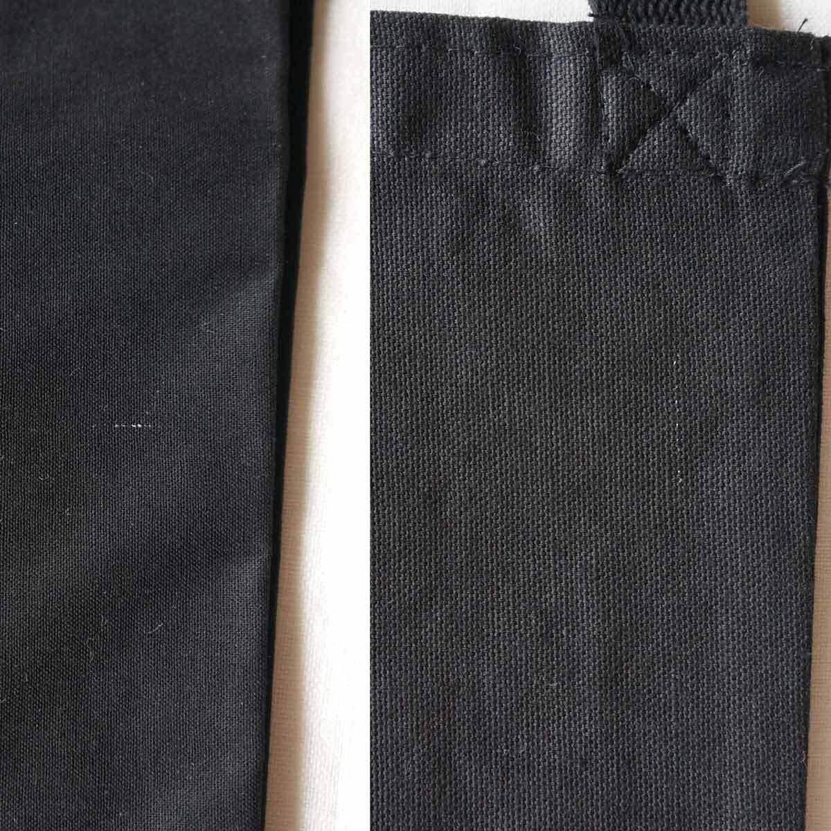 袋口が狭く、生地も厚いので、裏返すときと元に戻すときに、プリント部分が折れたり擦れないように注意するのが少し難しいです。また、アイロンはコンパクトなものでないと、袋に入りにくいかと思います。