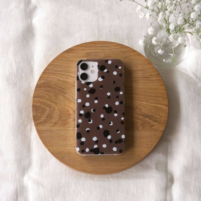 ●●●●● ◎「 スマホケース 」一覧はこちら https://www.heaven.jpn.com/categories/558529 ◎「 機種リスト 」はこちら https://www.heaven.jpn.com/p/00002 ★ < Android > と < iPhone Lサイズ > は、1点につき+400円になります。 オプションにて機種をご選択ください。 ・< iPhone M >:[12 mini/13 mini][SE(第1/2/3世代)][4/4s/5/5c/5s/6/6s/7/8]…追加なし ・< iPhone L >:上記以外 +400円 ・< Android >:+400円 ●●●●● ◎ お買い得なセットはこちら ♡ 2点セット https://www.heaven.jpn.com/items/77903527 ☆ 3点セット https://www.heaven.jpn.com/items/77932413 ●●●●● イラスト模様 「 fuwa yuki soda & dot または、お洒落な水風船 」 をプリントした 【 表面のみ印刷タイプ 】の 『 ハード型スマホケース 』です。 小さなドットをちりばめた ソーダのような水玉模様「 fuwa yuki soda 」に、 大きなドットを重ねた お洒落な水風船のような模様を < クリアケース >にプリントしました。 こちらのお色は、 落ち着いたダークブラウンをベースに、 白と黒の小さなドットと、 上からまた黒の水玉模様を重ねた シンプルでシックなカラーリングです。 プリントは、 さらりとした手触りの落ち着いた質感になります。 スマホを縁取るクリアケースの透明感が軽やかです。 ふわふわ水玉模様のキュートな可愛さ、 渋めのカラーでお楽しみください。 ※ 写真は「 iPhone 12mini 」になります。 各機種のサイズによって、模様の出方が多少異なります。 ご注文後にイメージ画像をお送りしますので、 ご確認をお願いいたします。 ※ スマホにセットすると、プリント面の下からスマホ本体のお色がほんのり透けて、色が重なり濃くなったような見え方になります。写真の白いスマホでは発色が明るくなり、黒いスマホでは明度・彩度が下がりやや暗くなります。 ※ 写真のお色は、ご覧になる環境によって見え方が異なります。 環境によっては、実物との違いが大きいこともあるため、多少のお色の差は気にならないという方にご購入いただけますと幸いです。 ■■■◉ オススメ POINT ◉■■■ 1.☑ 『ふわふわ可愛い水玉模様』 ランダムなドットの重なりが可愛い 水風船やソーダみたいな水玉模様です。 春夏にはもちろん、 秋冬にも軽やかにお楽しみいただけます。 2.☑ 『 丈夫で長持ちハード型 』 傷みや汚れが目立ちにくく、丈夫で長持ちなハードタイプです。 ※ こちらの透明タイプのプリントのない部分は、白ケースよりもスリ傷がちょっぴり目立ちやすいです。 3.☑ 『 軽い 』 軽いプラスチック素材なので、スマホに無駄なくフィットする心地よさが◎ かさばらずに身軽にスマホを持ち歩けるのも魅力です。 4.☑ 『 やさしい雰囲気のプリント 』 艶のあるケースに落ち着いたマットな質感のプリントで、 やさしい雰囲気の仕上がりです。 表面のみのプリントで、カーブの部分が縁取りで残りますが、 違和感なくスマホに溶け込むデザインです。 ※ ひとつひとつ模様の出方(配置・大きさ等)が異なります。 ※ クリアケースは、下地のホワイトの上にプリントされています。 下地のホワイトが少しはみ出してプリントされてしまうことがありますことご了承ください。 5.☑ 『 Android も iPhone もOK!』 iPhone は全機種対応。 Android の対応機種も豊富なので、リストで探してみてください。 https://www.heaven.jpn.com/p/00002 ●●●●● ★ お買い物前にご確認ください☆彡 「 SHOPPING GUIDE 」 https://www.heaven.jpn.com/p/00003 ●●●●● ★「 スマホケースの< お届け方法 >について 」ご確認ください☆彡 https://www.heaven.jpn.com/p/00005 ▼ 2種類のお届け方法があります。 1 ◉ 工場直送 ◉ 【 送料無料 / 5~20日ほど 】でお届け。 ※ ラッピングは不可となります。 ※ 他の商品もご注文時 / 送料無料の金額になる時は、備考欄に『 スマホケースの< 工場直送 > 』とご記入ください。 2 ◉ ショップからの配送 ◉(クリックポスト or 宅急便コンパクト) 【 ギフトラッピング無料 / ポストカード・紙タグ付き / 10~20日ほど 】でお届け。 ※ ラッピングは以下のページをご覧の上、オプションにてご希望のタイプ < a / b / c >をお選びください。 https://www.heaven.jpn.com/p/00007 ●●●●●