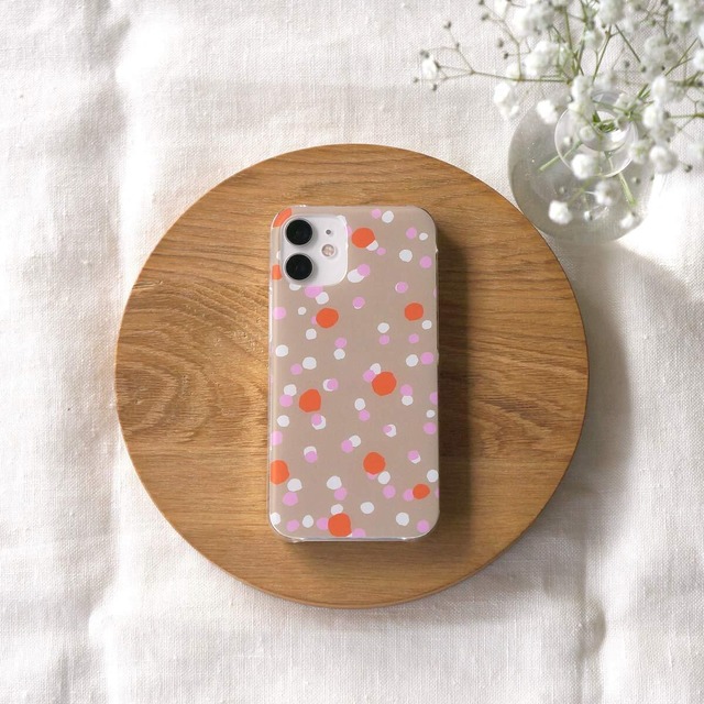 ●●●●● ◎「 スマホケース 」一覧はこちら https://www.heaven.jpn.com/categories/558529 ◎「 機種リスト 」はこちら https://www.heaven.jpn.com/p/00002 ★ < Android > と < iPhone Lサイズ > は、1点につき+400円になります。 オプションにて機種をご選択ください。 ・< iPhone M >:[12 mini/13 mini][SE(第1/2/3世代)][4/4s/5/5c/5s/6/6s/7/8]…追加なし ・< iPhone L >:上記以外 +400円 ・< Android >:+400円 ●●●●● ◎ お買い得なセットはこちら ♡ 2点セット https://www.heaven.jpn.com/items/77903527 ☆ 3点セット https://www.heaven.jpn.com/items/77932413 ●●●●● イラスト模様 「 fuwa yuki soda & dot または、お洒落な水風船 」 をプリントした 【 表面のみ印刷タイプ 】の 『 ハード型スマホケース 』です。 小さなドットをちりばめた ソーダのような水玉模様「 fuwa yuki soda 」に、 大きなドットを重ねた お洒落な水風船のような模様を < クリアケース >にプリントしました。 こちらのお色は、 落ち着いたグレイッシュなベージュをベースに、 白とピンクの小さなドットと、 上からオレンジの水玉模様を重ねた シックで可愛いカラーリングです。 プリントは、 さらりとした手触りの落ち着いた質感になります。 スマホを縁取るクリアケースの透明感が軽やかです。 ふわふわ水玉模様のキュートな可愛さ、 大人の甘いカラーでお楽しみください。 ※ 写真は「 iPhone 12mini 」になります。 各機種のサイズによって、模様の出方が多少異なります。 ご注文後にイメージ画像をお送りしますので、 ご確認をお願いいたします。 ※ スマホにセットすると、プリント面の下からスマホ本体のお色がほんのり透けて、色が重なり濃くなったような見え方になります。写真の白いスマホでは発色が明るくなり、黒いスマホでは明度・彩度が下がりやや暗くなります。 ※ 写真のお色は、ご覧になる環境によって見え方が異なります。 環境によっては、実物との違いが大きいこともあるため、多少のお色の差は気にならないという方にご購入いただけますと幸いです。 ■■■◉ オススメ POINT ◉■■■ 1.☑ 『ふわふわ可愛い水玉模様』 ランダムなドットの重なりが可愛い 水風船やソーダみたいな水玉模様です。 春夏にはもちろん、 秋冬にも軽やかにお楽しみいただけます。 2.☑ 『 丈夫で長持ちハード型 』 傷みや汚れが目立ちにくく、丈夫で長持ちなハードタイプです。 ※ こちらの透明タイプのプリントのない部分は、白ケースよりもスリ傷がちょっぴり目立ちやすいです。 3.☑ 『 軽い 』 軽いプラスチック素材なので、スマホに無駄なくフィットする心地よさが◎ かさばらずに身軽にスマホを持ち歩けるのも魅力です。 4.☑ 『 やさしい雰囲気のプリント 』 艶のあるケースに落ち着いたマットな質感のプリントで、 やさしい雰囲気の仕上がりです。 表面のみのプリントで、カーブの部分が縁取りで残りますが、 違和感なくスマホに溶け込むデザインです。 ※ ひとつひとつ模様の出方(配置・大きさ等)が異なります。 ※ クリアケースは、下地のホワイトの上にプリントされています。 下地のホワイトが少しはみ出してプリントされてしまうことがありますことご了承ください。 5.☑ 『 Android も iPhone もOK!』 iPhone は全機種対応。 Android の対応機種も豊富なので、リストで探してみてください。 https://www.heaven.jpn.com/p/00002 ●●●●● ★ お買い物前にご確認ください☆彡 「 SHOPPING GUIDE 」 https://www.heaven.jpn.com/p/00003 ●●●●● ★「 スマホケースの< お届け方法 >について 」ご確認ください☆彡 https://www.heaven.jpn.com/p/00005 ▼ 2種類のお届け方法があります。 1 ◉ 工場直送 ◉ 【 送料無料 / 5~20日ほど 】でお届け。 ※ ラッピングは不可となります。 ※ 他の商品もご注文時 / 送料無料の金額になる時は、備考欄に『 スマホケースの< 工場直送 > 』とご記入ください。 2 ◉ ショップからの配送 ◉(クリックポスト or 宅急便コンパクト) 【 ギフトラッピング無料 / ポストカード・紙タグ付き / 10~20日ほど 】でお届け。 ※ ラッピングは以下のページをご覧の上、オプションにてご希望のタイプ < a / b / c >をお選びください。 https://www.heaven.jpn.com/p/00007 ●●●●●